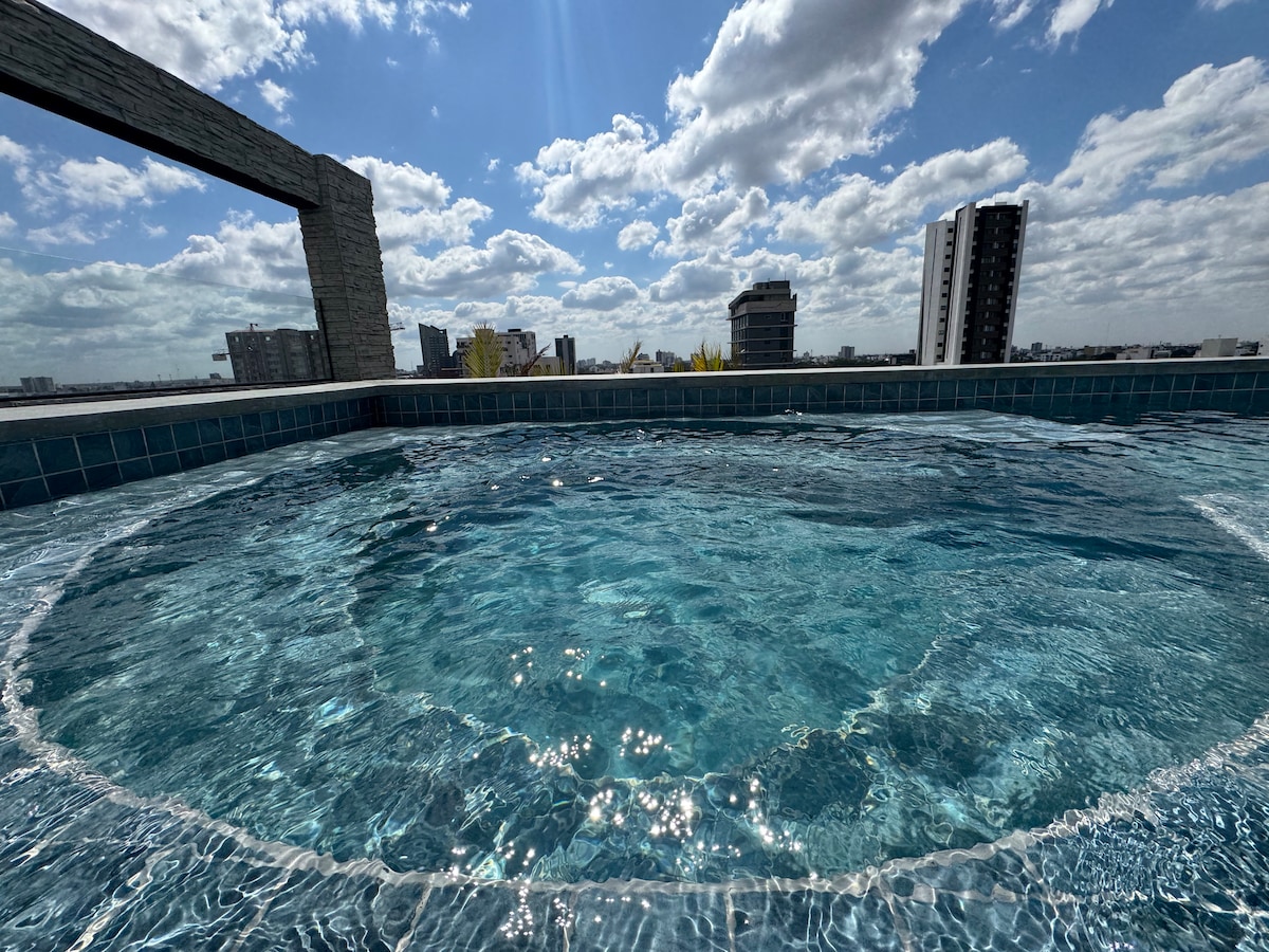 Despertarás en un Studio totalmente equipado que combina comodidad hogareña y confort. Entrarás a un estilo de vida sofisticado; cada detalle ha sido cuidadosamente diseñado para satisfacer altas expectativas. Tendrás todas las comodidades. ¿Relajarse? Sumérgete en la piscina. ¿Ejercicio? ¡Hay Gym! ¿Trabajo? Podrás continuar tu rutina en las múltiples zonas sociales que ofrecen el escenario perfecto.¿Divertirte? Podrás jugar billar y usar la sala común ¡Reserva y descubre este Studio!