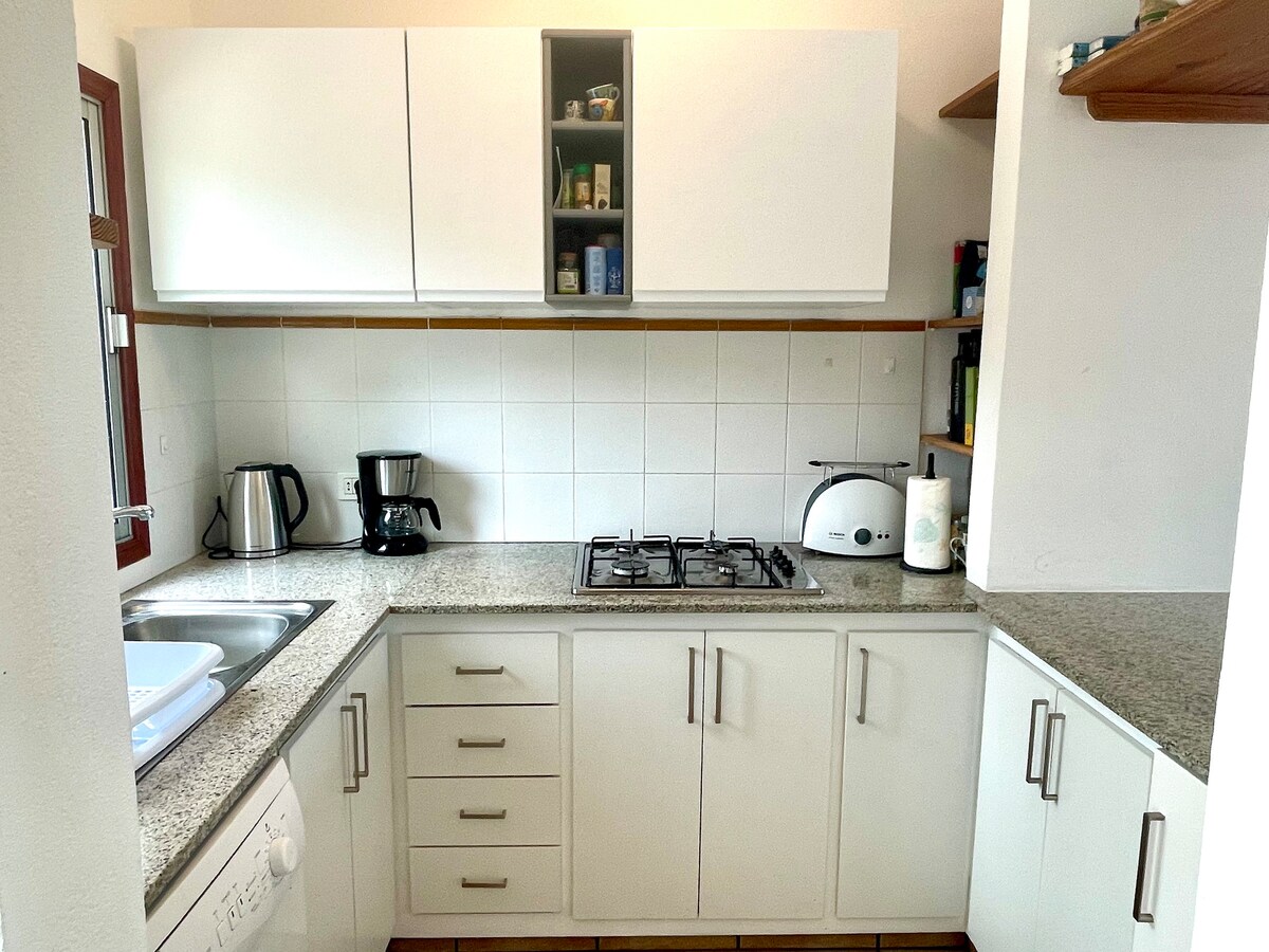Պայծառ սիրալիր քոթեջ ՝ իր ոճով ։ Նոր վերանորոգված բնակարանում դուք ունեք հանգստանալու, կերակուր պատրաստելու, սնվելու և տան գրասենյակում աշխատելու տեղ: Վայելեք մայրամուտը հարմարավետ տեռաս ՝ բազմոցով ։ Երկտեղանի մահճակալից երևում և լսում եք ծովը ։ Տեներիֆեի ամենաերկար և ամենագեղեցիկ բնական լողափը շքամուտքից անմիջապես այն կողմ է ՝ 5 րոպե ոտքով դեպի ջուրը ։ Բացի այդ, դուք ունեք ընդամենը 8 րոպե ոտքով դեպի Տեջիտա կենտրոն ՝ ռեստորաններով և սուպերմարկետներով:
