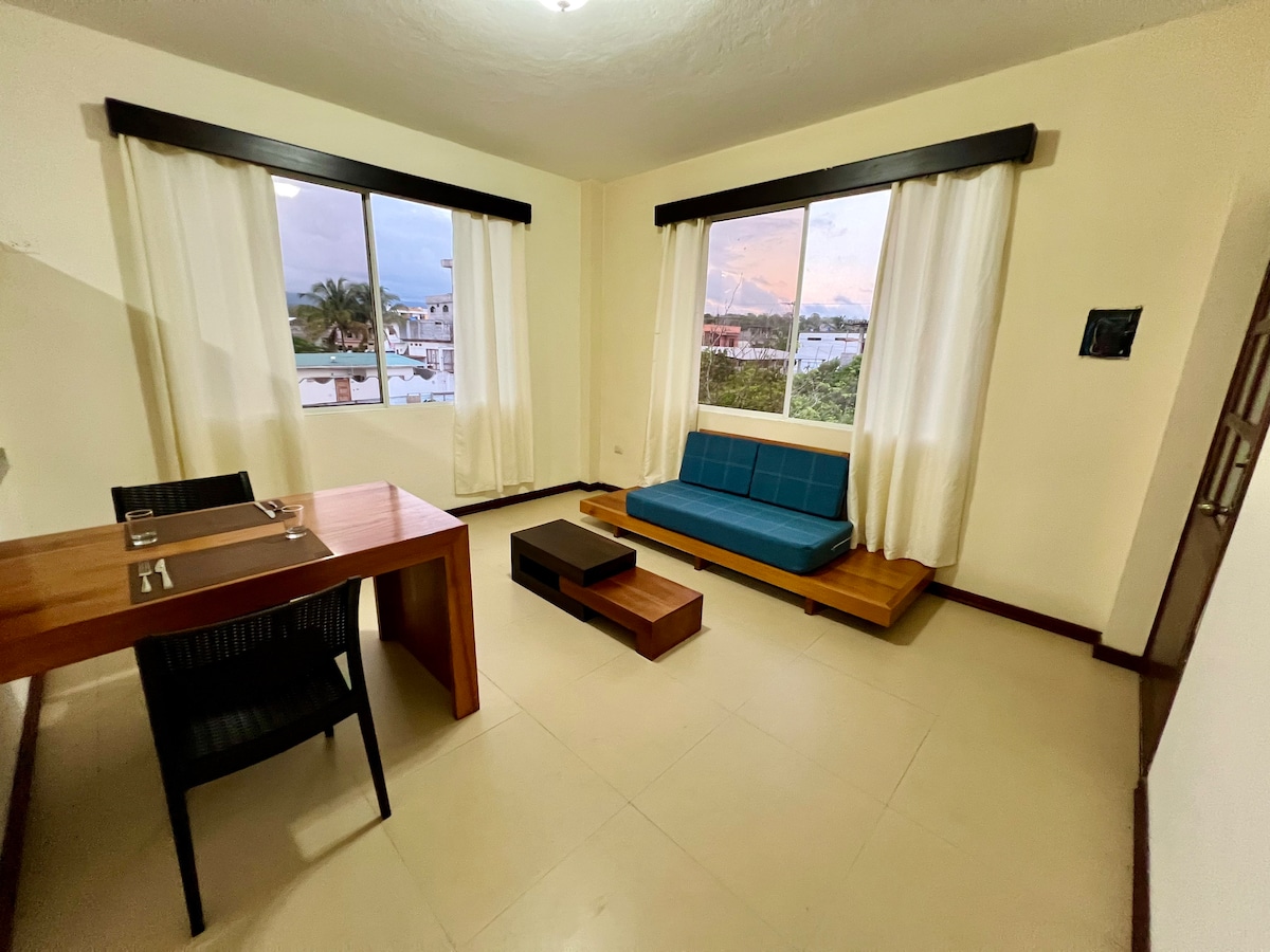 Սա օրենքով գրանցված գեղեցիկ սեփականություն է ՝ հիանալի տեսարաններով և օվկիանոսի թարմ քամիներով ։ Մեր բնակարանը գտնվում է Չարլզ Դարվին պողոտայից երկու թաղամաս հեռավորության վրա ։ Հյուրերը կարող են հանգիստ զբոսնել դեպի հիմնական տեսարժան վայրեր, ինչպիսիք են Չարլզ Դարվինի հետազոտական կայանը և լողափը, հիանալի ռեստորանները, սրճարանները, խանութները, սուզալողի խանութները, տուրօպերատորները և այլն ։ Հիանալի տարբերակ ճկունություն, հարմարավետություն և լավ արժեք փնտրող հյուրերի համար ։ Ննջասենյակում կա օդորակիչ, սակայն բնակելի տարածքն օգտվում է միայն գեղեցիկ ծովային քամիներից ։