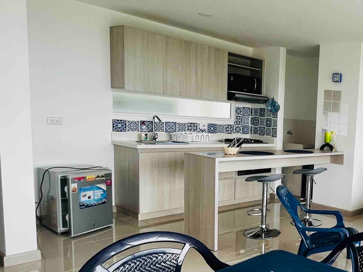 Բնակարան ուրբանիզացիայում ՝ Citadela Disolé, Սանտա Ֆեի գլխավոր զբոսայգուց 7 րոպե հեռավորության վրա ։ Համապատասխանեցված է երկու ննջասենյակով, որոնցից յուրաքանչյուրում կա երկտեղանի մահճակալ և լոգասենյակ, ընդարձակ հյուրասենյակ ՝ բազմոցով և լոգասենյակով, պատշգամբ ՝ հիանալի տեսարանով, մեծ լողավազան և ֆուտբոլի դաշտ ՝ շենքի ընդհանուր տարածքներում ։ Հիանալի վայր է ընկերների հետ վայելելու համար ։ Ներառում է 4 ՄԳ Wi - Fi ծառայություն, Սմարթ հեռուստացույց և օդորակիչ ։ Տնային կենդանիներ թույլատրվում են ։