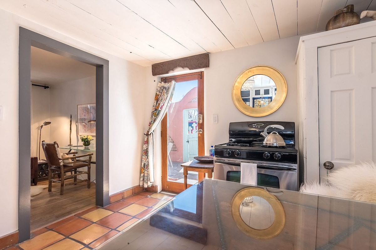Վերջերս վերանորոգված լոֆթ ննջասենյակի ստուդիան հիանալի մնալու տեղ է Սանտա Ֆեում ՝ միայնակ ճանապարհորդողների, հարմարավետ զույգի կամ 3 հոգանոց փոքր խմբի համար ։ Հյուրընկալ բնակելի տարածքը կատարյալ է հանգստանալու և ֆիլմ դիտելու կամ գիրք կարդալու համար ։ Նաև հիանալի տարածք աշխատանքային ուղևորության համար: Էլեկտրական բուխարին ստեղծում է հարմարավետ մթնոլորտ և ավելացնում է կասիտայի մյուս պատմական հմայքը, ինչպիսիք են վիգաները և կարմիր աղյուսե հատակը:
