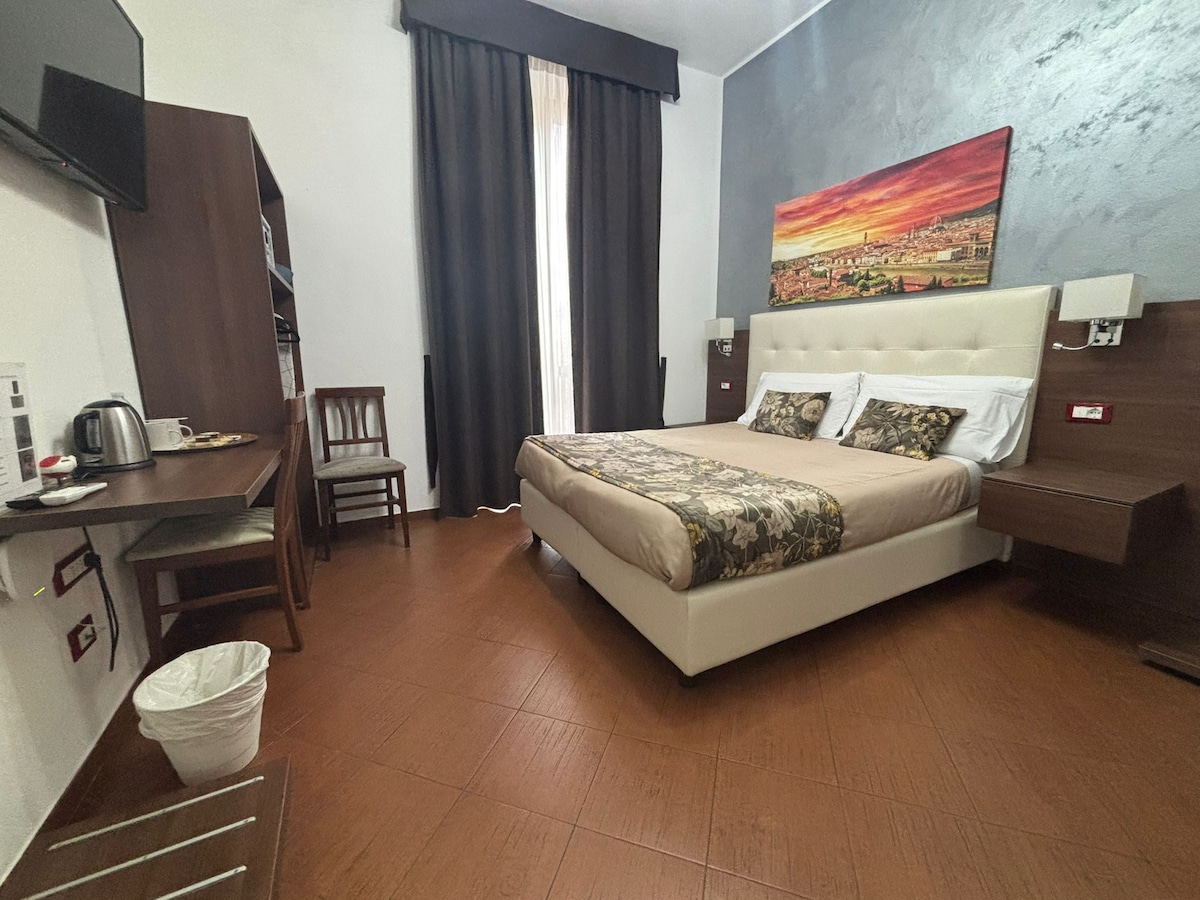 Մեր հարմարավետ սենյակները հենց դա են ՝ հարմարավետ վայր, որտեղ կարելի է գրկախառնվել քաղաքում անցկացրած ծանրաբեռնված օրվանից հետո ։ Յուրաքանչյուր սենյակ ունի 160 սմ լայնությամբ մահճակալ ՝ մեծ անկողնային պարագաներով, որոնք կօգնեն հանգստանալ և լիցքաթափվել ։ Որոշ հարմարավետ սենյակներում կա նաև գրասեղան ։ Ֆլորենցիայի հիմնական տեսարժան վայրերը հյուրանոցից հեշտ զբոսանքն են: Քաղաքային հարկը ներառված է գնի մեջ: