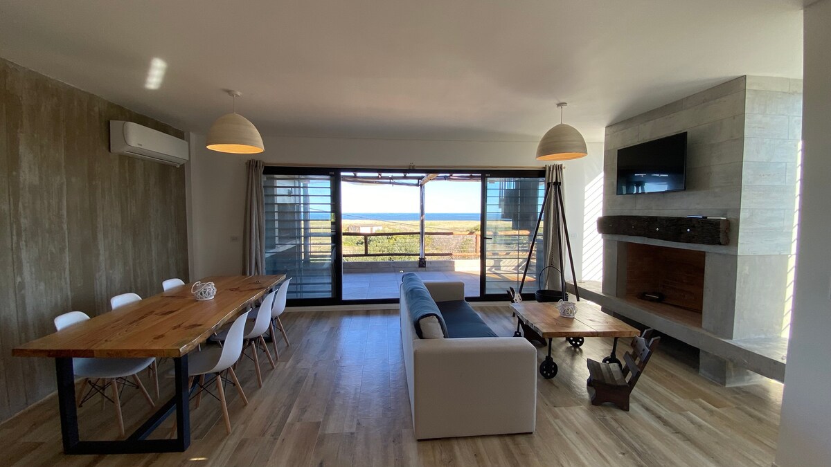 • Contemporary design house. • Beachfront, first row. • Ideal for families. Maximum capacity: 10 • Capacity for groups of adults: 8 • Habitable year-round. • Direct access to La Boyita beach just across the street. • Green and natural surroundings in a very quiet area. • Terrace with barbecue and beach view. • Open rooftop with a lookout.