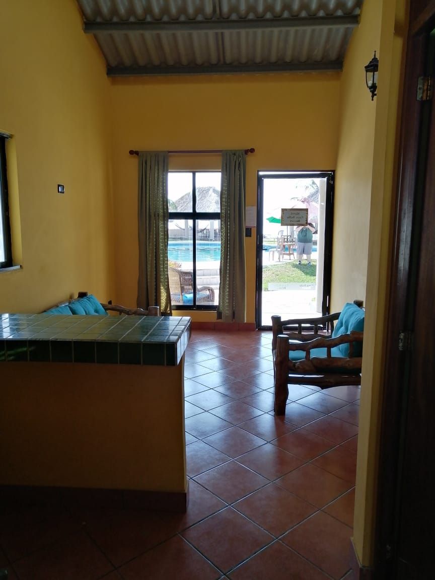Bungalow para 4 personas, con acceso directo a la playa, hermosos Atardeceres, piscina, ateas de descanso. cuenta con sala, desayunador, mini refri, dos habitaciones cada una con Camas Queen Zize, Aire condicionado, WiFi, la habitación principal cuenta con TV con cable y baño completo.