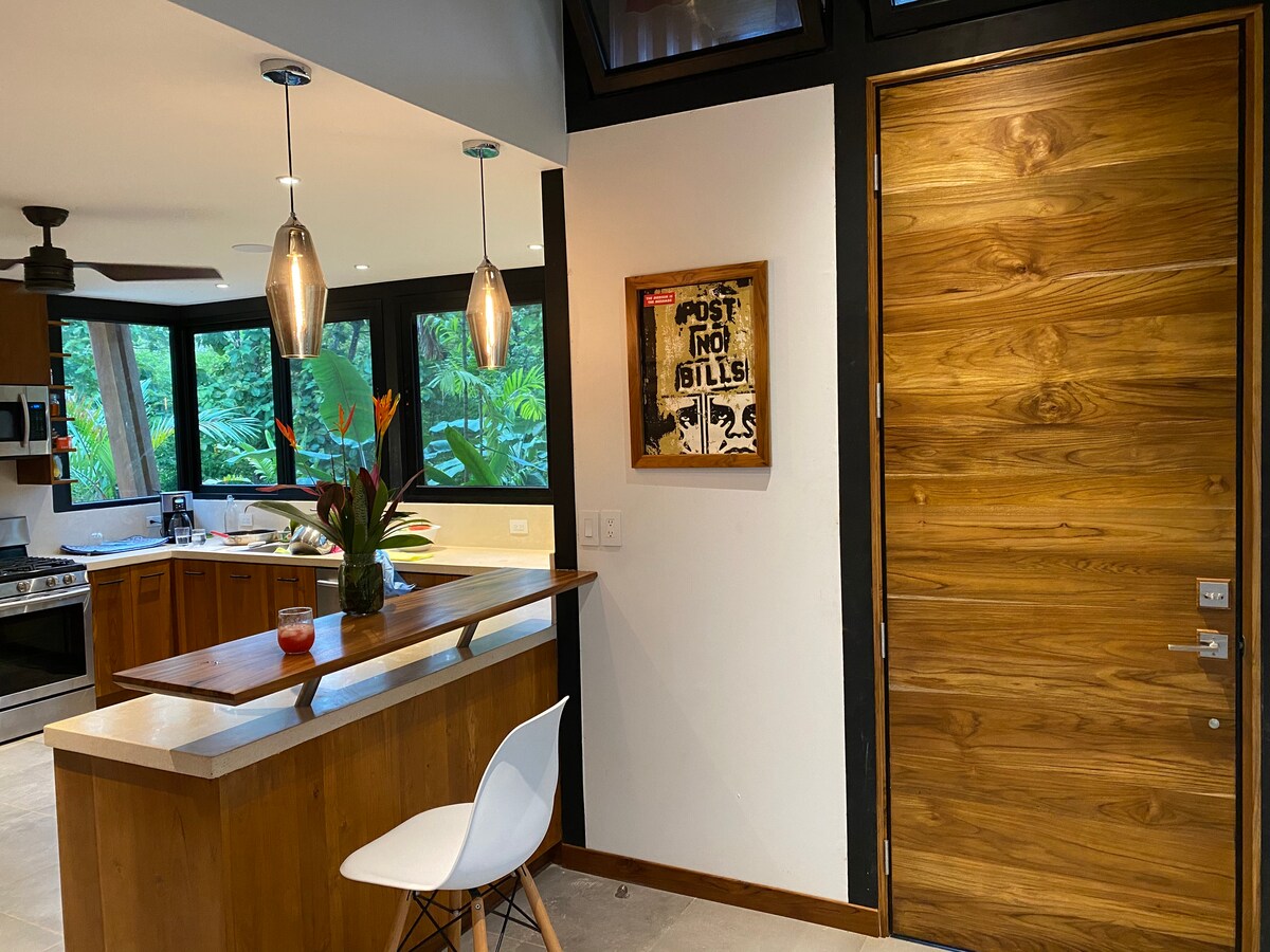 Բարի գալուստ մեր «Ջունգլիների տուն », որն առաջարկում է խաղաղություն, բնության գրկում և գաղտնիություն ՝ չվտանգելով ժամանակակից հարմարավետությունն ու անվտանգությունը ։ Գտնվում է շատ հանգիստ ճանապարհին ՝ առանց խցանումների և շատ քիչ աղմուկի, բացի վայրի բնությունից և քամուց ։ Այստեղ կարող եք բացահայտել ժամանակակից շքեղություն Սանտա Թերեզայի և Մոնտեզումայի միջև թաքնված օազիսում ։ Մոնտեզումա լողափից ընդամենը 10 րոպե հեռավորության վրա և Սանտա Թերեզա լողափից 20 րոպե հեռավորության վրա գտնվող այս տունն անխափանորեն համադրում է նրբագեղությունը բնության հետ ։