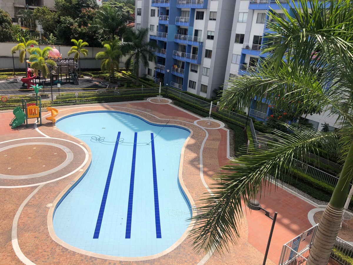 Գեղեցիկ բոլորովին նոր բնակարան: 10 - րդ հարկ ՝ հիասքանչ մայրամուտի տեսարանով: Կենտրոնական գտնվելու վայրը. Բնակելի եւ անվտանգ տարածք կողքին Cacique Mall եւ Neomundo կոնվենցիայի կենտրոն, հեշտ մուտք դեպի Carrera 33,Cabecera,Girón եւ Floridablanca. 2 ննջասենյակ, 2 պատշգամբ, ցանցաճոճ, 2 լոգասենյակ, 2 մահճակալ, օժանդակ մահճակալ և բազմոց մահճակալ: Գերազանց լուսավորություն և օդափոխություն, 300mbps WIFI, 2 հեռուստացույց ՝ DirecTvGO - ից, Netflix - ից, Amazon - ից և HBO - ից օգտվելու հնարավորությամբ: Համալիրի առաջին հարկը ՝ մինիմարկետով, հացաբուլկեղենով, դեղատներով և այլն ։
