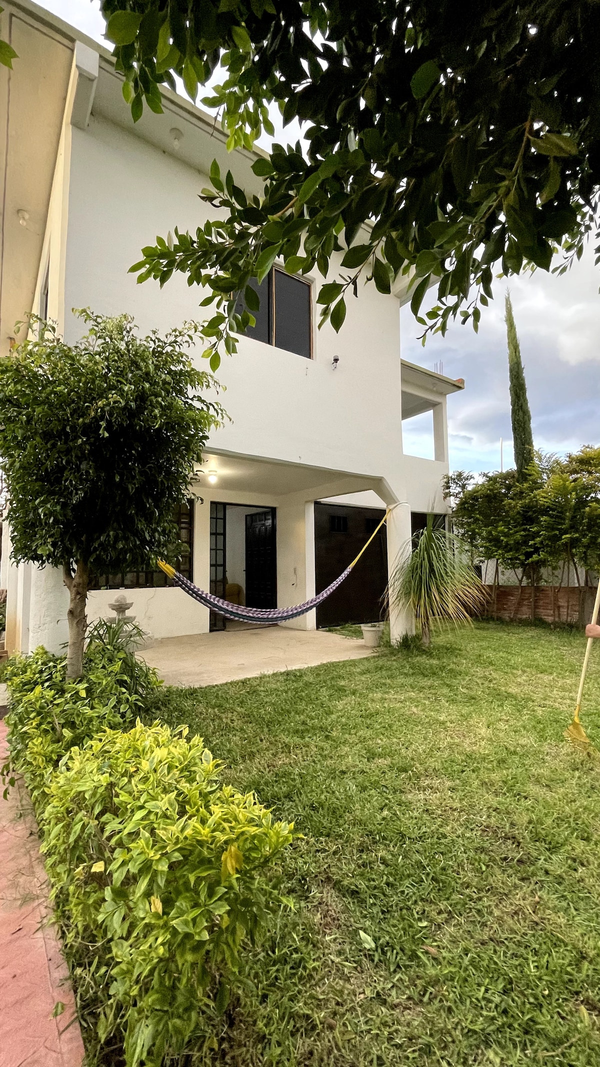 Mini casa que forma parte de un grupo de 4 casas, cada una independiente. Cuenta con buena iluminación, jardín de uso común ideal para relajarte. Las habitaciones son limpias, con espacio suficiente para estar cómodo. Sala y comedor son pequeños pero acogedores, con todos los servicios y aire acondicionado. Nos encontramos sobre la Carretera Federal y parada del Zompantle, a solo 25 minutos del centro Oaxaca. Un espacio ideal para descansar de la ciudad.
