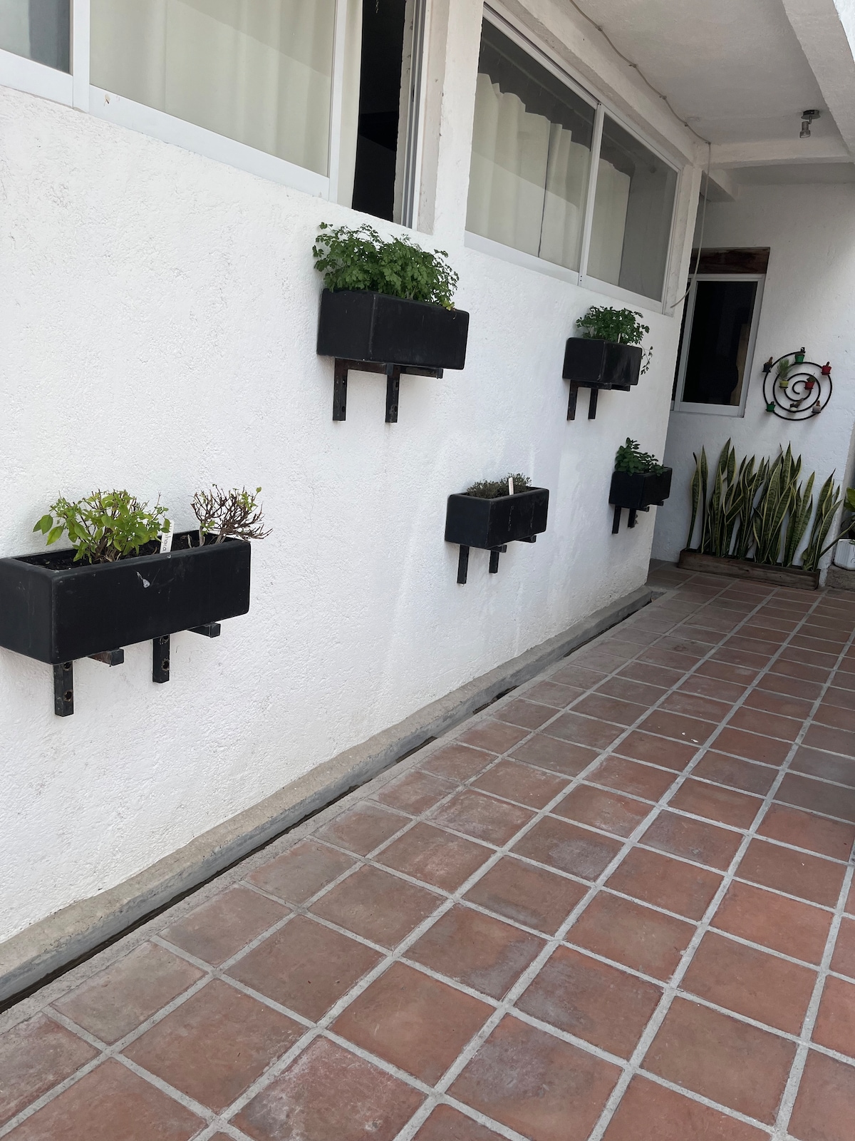 Լավ լուսավորված բնակարան առաջին հարկում: Բնակարանը շրջապատված է ծառերով և բույսերով և ունի հիանալի տեսարան, որտեղ կարող եք օգտվել այգիներից և տեռասներից ՝ կարդալու, մեդիտացիա անելու կամ պարզապես հանգստանալու համար: Մենք ընդամենը 5 րոպե հեռավորության վրա ենք Plaza Antea - ից և ստորաբաժանումում կարող եք գտնել դեղատներ, հարմարավետ խանութներ, Superama, կինոթատրոն, ամեն տեսակի ռեստորաններ,սրճարաններ, կայարաններ, բանկեր և այլն: Մենք գտնվում ենք պատմական կենտրոնից 20 րոպե հեռավորության վրա: