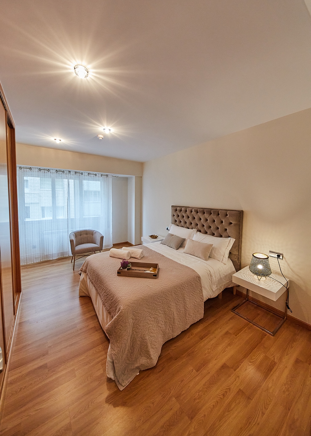 Disfruta de la sencillez de este tranquilo y céntrico alojamiento en el corazón De Santiago. Situado a 5’ de la zona vieja, y a 10’ caminado de la catedral, disfrutarás del encanto de la ciudad. El apartamento cuenta con 2 dormitorios, baño, cocina completamente equipada, lavadora y tendal. Acceso a una amplia finca de uso privado. Buena comunicación con todas las líneas de autobús. Ubicación excelente para conocer el casco histórico de Santiago sin necesidad de transporte.