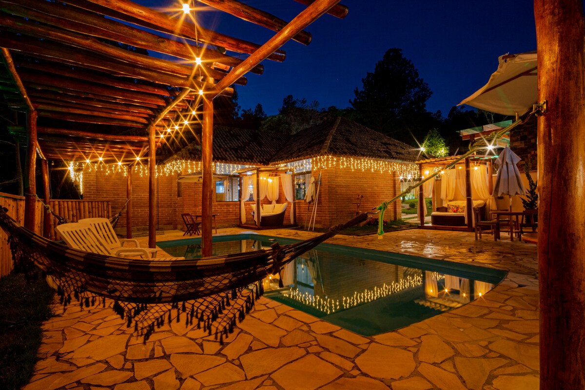 chale /jacuzzi/piscina aquecida /café /lareira/ar
