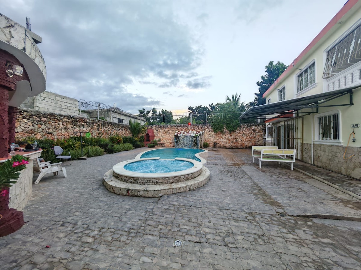 Ամբողջ ընտանիքին բերեք Դոմինիկյան Հանրապետության մայրաքաղաքում գտնվող այս ընդարձակ տունը ։ Վայելեք մեծ առանձին լողավազան, ընդարձակ հետնաբակ, բացօթյա ցնցուղ, ամբողջական բացօթյա լոգասենյակ և զուգարան ։ Տանը կա Wi - Fi - ով և Netflix - ով հեռուստացույց, հյուրասենյակին կից գեղեցիկ խոհանոց և ընդարձակ բնակելի տարածք ։ Ծխելն արգելվում է ներսում ՝ խախտումների համար 500 $ վճարով ։ Խնդրում ենք աչքի անցկացնել մեր տարածքի մասին տեղեկությունները և տան կանոնները ՝ համոզվելու համար, որ մեր տունը հարմար է ձեզ ։