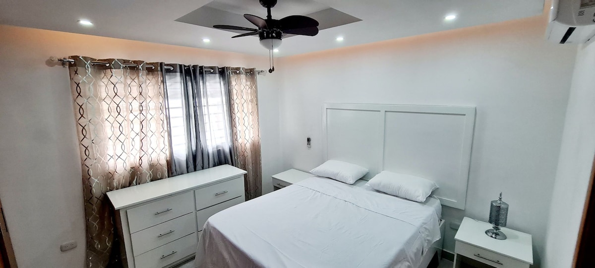 Հանգստացեք այս գեղեցիկ և հարմարավետ բնակարանում ՝ ձեր այցը հիշարժան դարձնելու համար անհրաժեշտ բոլոր ծառայություններով: Գտնվելով Կարիբյան ծովին սահմանակից Լաս Ամերիկաս մայրուղու վրա ՝ դուք կհայտնվեք Բոկա Չիկայում և Խուան Դոլիոյում գտնվող գեղեցիկ լողափերից մի քանի կիլոմետր հեռավորության վրա ՝ սուպերմարկետից և առևտրային հրապարակներից 3 րոպե հեռավորության վրա: Այս տունը գտնվում է Ամերիկայի միջազգային օդանավակայանից (SDQ) ընդամենը 20 րոպե հեռավորության վրա, իսկ կենտրոնից ՝ ընդամենը 15 րոպե հեռավորության վրա ։