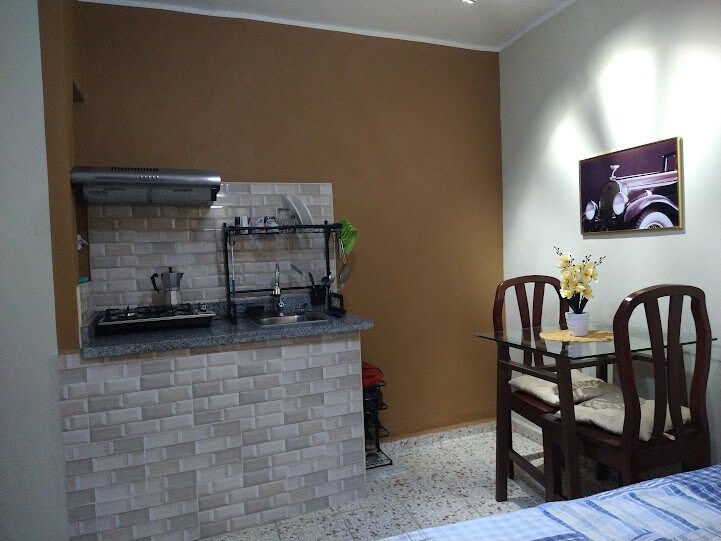 Estudio, completamente equipado con todo lo necesario para una estadía placentera, Perfecto para una o dos personas. Muy bien ubicado, a 3 minutos de grandes Centros Comerciales, supermercados, restaurantes y foodtrucks. A tan sólo 15 metros de una Clínica Estética y de salud. Un lugar tranquilo y seguro, fácil ubicación a través de transporte público o privado y una opción ideal para relajarte, descansar. Es un segundo nivel, con escalera y parqueo cerrado, no techado.