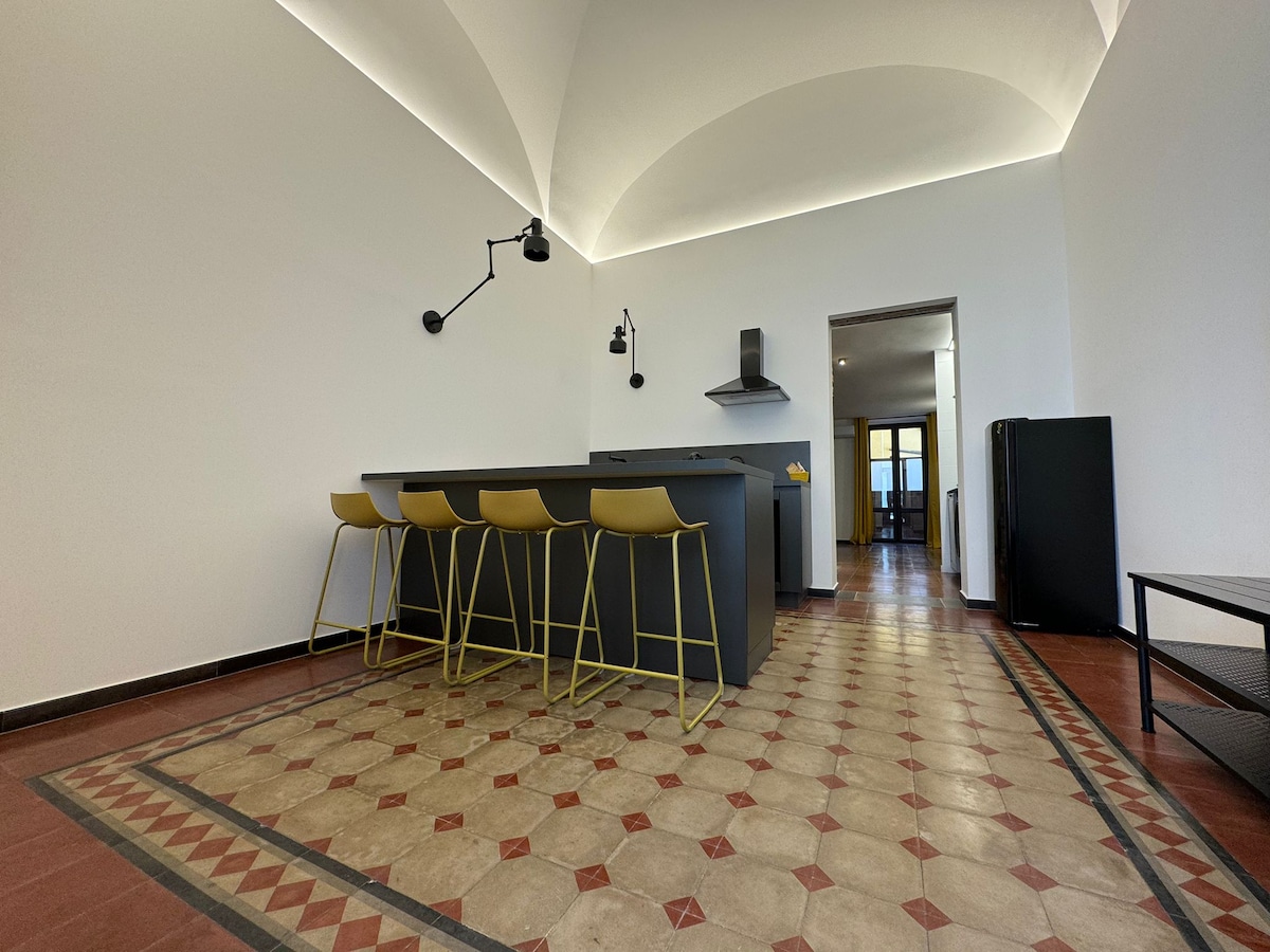 Ժամանակակից բնակարան, որը նայում է դեպի հնագույն պալատի բարոկկո բակը, որը գտնվում է Կատանիայի պատմական կենտրոնի սրտում ՝ Պիացցա Ստեսիկորոյի և Վիա դի Սանգիուլիանոյի միջև ։ Բնութագրվում է լայն բարձունքներով, մեծ պատուհաններով, որոնք խրախուսում են բնական լույսի մուտքը, և դիզայներական նմուշներ, որոնք հարմարեցնում են շրջակա միջավայրը ։ Տունը ենթակա է մանրէազերծման ՝ ձեր այցն անվտանգ դարձնելու համար ։
