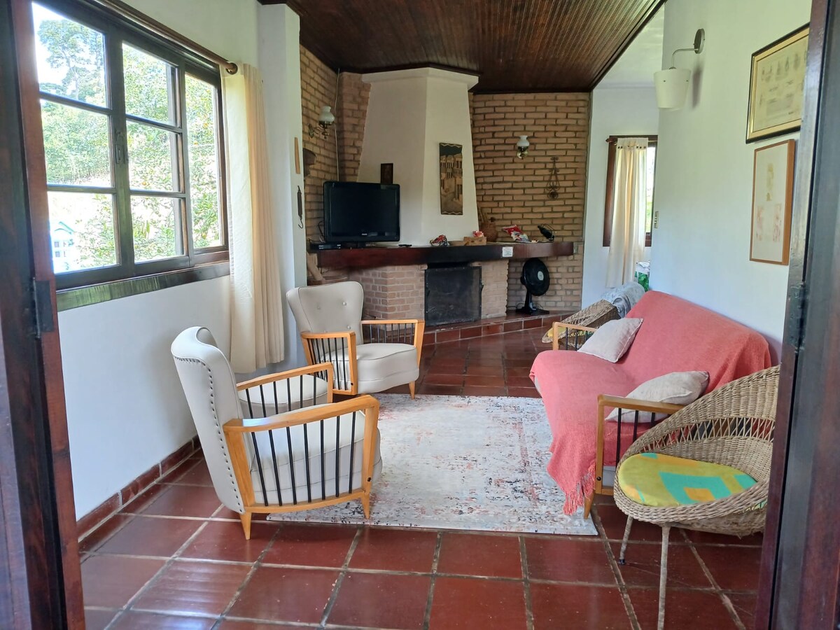 Casa de Campo (SOMENTE ATÉ 10 pessoas em todos os dias da estadia, Não é casa de festas e eventos)confortável área gourmet, lareira, mesa 10 pessoas, churrasqueira, TV aberta, piscina aquecida com trocador de calor NÃO elétrico(precisa dias de sol para aquecer), sinuca, fogo de chão, balanço, redário, da para fazer uma caminhada pelo espaço em 3000m muito verde e florido, hortinha,, encante com suas fotos, aqui você pode vir só com as amigas, total segurança e apoio moramos na propriedade.