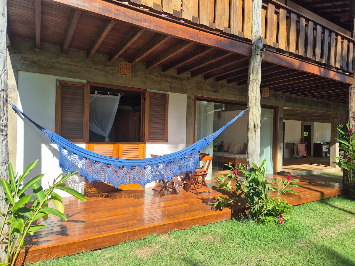 É um espaço calmo e cheio de estilo à 200 metros da praia, em meio a vegetação nativa! Somos LGBTQIAP+ friendly e por estarmos afastados do núcleo da comunidade desfrutamos de silêncio e tranquilidade mas a cinco minutos do agito! A suíte com vista para as árvores é garantia de descanso. A cozinha com teto de piaçava é linda e está preparada com o necessário. A sala de banho conta com espaços reservados que garante a sua intimidade. Relaxe neste espaço! Você vai adorar!