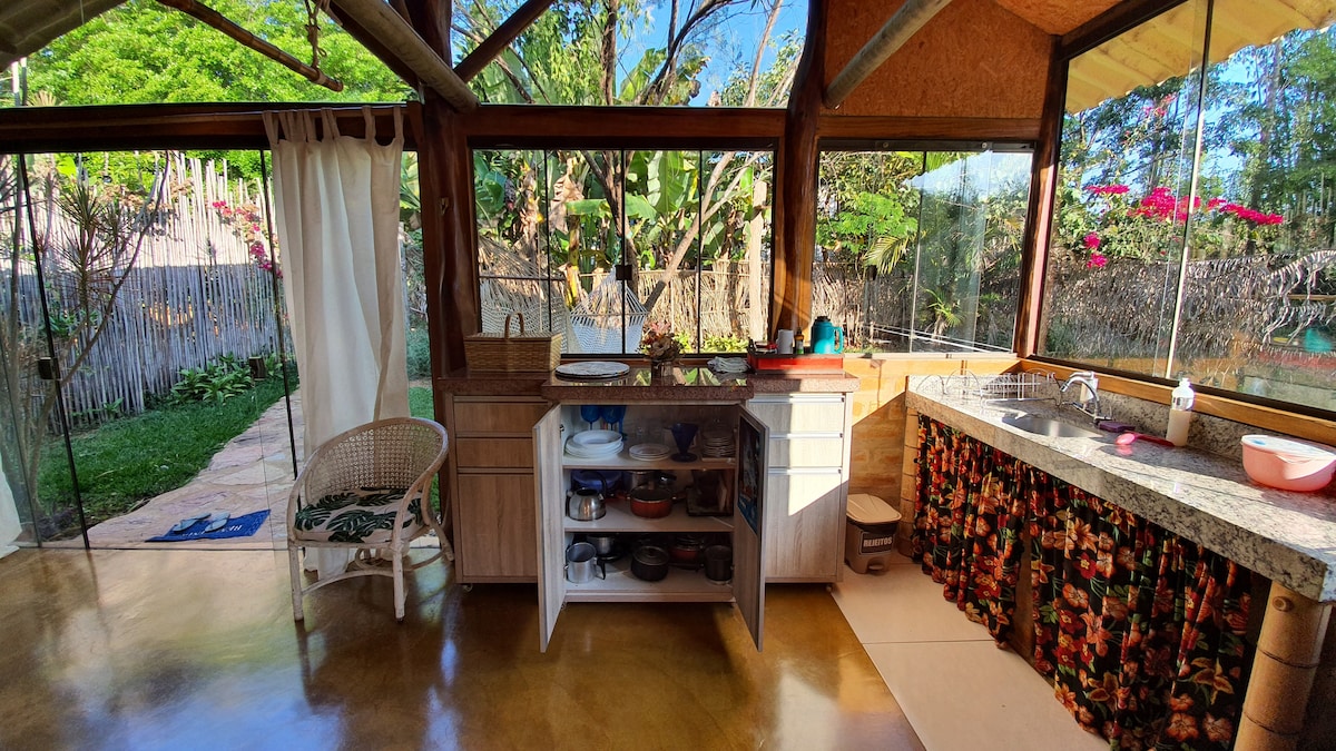 Գեղեցիկ տուն, որը հարուստ է դրախտի ամեն մի մանրուքով ։ Գտնվում է ճանապարհի վրա Alto Paraíso դեպի São Jorge - ժամը 12 - ին, դուք պետք է քշել մոտ 6 կմ կեղտը ճանապարհի! Շրջապատված մեր հմայիչ cerrado - ով ՝ այս տունն ունի առանձնաբաժին և ննջասենյակ ՝ սոցիալական լոգասենյակով: Լրիվ խոհանոց, բուխարի, լողավազան, մանղալ, դրսի ճաշասենյակ, փայտյա պիցցայի վառարան, ՍՊԱ ջակուզիով և գոլորշու սենյակ... Դժվար է դուրս գալ այստեղից ՝ ինչ - որ ջրվեժ գնալու համար: Օ ՜, մենք ունենք նաև կովեր և ձիեր դիտարկման համար:
