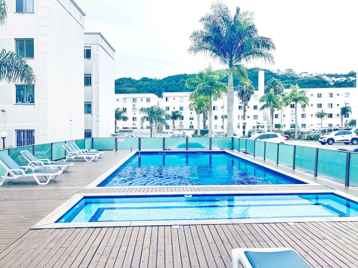 Novíssimo, ideal para quem viaja a trabalho ou lazer, ótima localização, a 300 mts de Mercado e Avenida principal com diversos restaurantes, à 10 min do centro de Floripa. O estúdio foi todo projetado para receber com conforto uma pessoa ou um casal. Wi-fi, TV, geladeira, fogão, micro-ondas, cafeteira, chaleira elétrica e utensílios básicos para preparar refeições. O prédio ainda conta com uma estrutura de piscina, academia, elevadores, espaço pet, lavandeira, garagem individual.