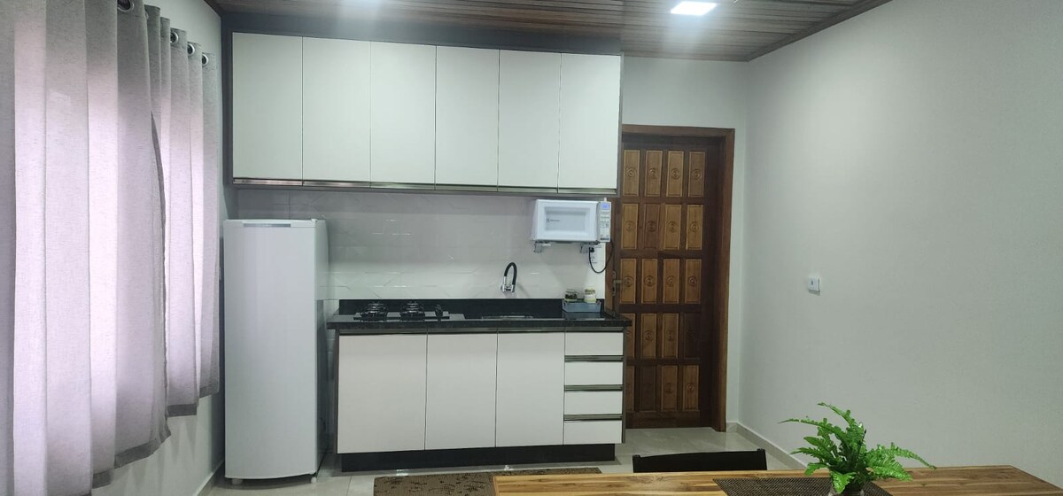 Casa/Studio հարմարավետ առաջին հարկ (մեկ սենյականոց բնակարան) 29 մ², ընդամենը 600 մ հեռավորության վրա Shopping Palladium-ից և մոտ Super Muffato-ին։ Այն առաջարկում է ավտոտնակ, էլեկտրոնային դարպաս և կողպեք, արագ Wi-Fi, գրասենյակային սեղան և ամբողջական ամերիկյան խոհանոց (սառնարան, սալօջախ՝ ջեռոցով, միկրոալիքային վառարան, օդային ֆրայեր, սրճեփ, սպասք և խոհանոցային պարագաներ)։ Կոմպակտ, գործնական և շատ լավ տեղադրությամբ Կուրիտիբայում՝ իդեալական հանգստի կամ աշխատանքի համար։ Հեշտ հասանելիություն ավտոբուսային երթուղիներին և բանկերին։ Մի քանի քայլ մինչև դեղատունը, հացաբուլկեղենի խանութը և գրենական պիտույքների խանութը