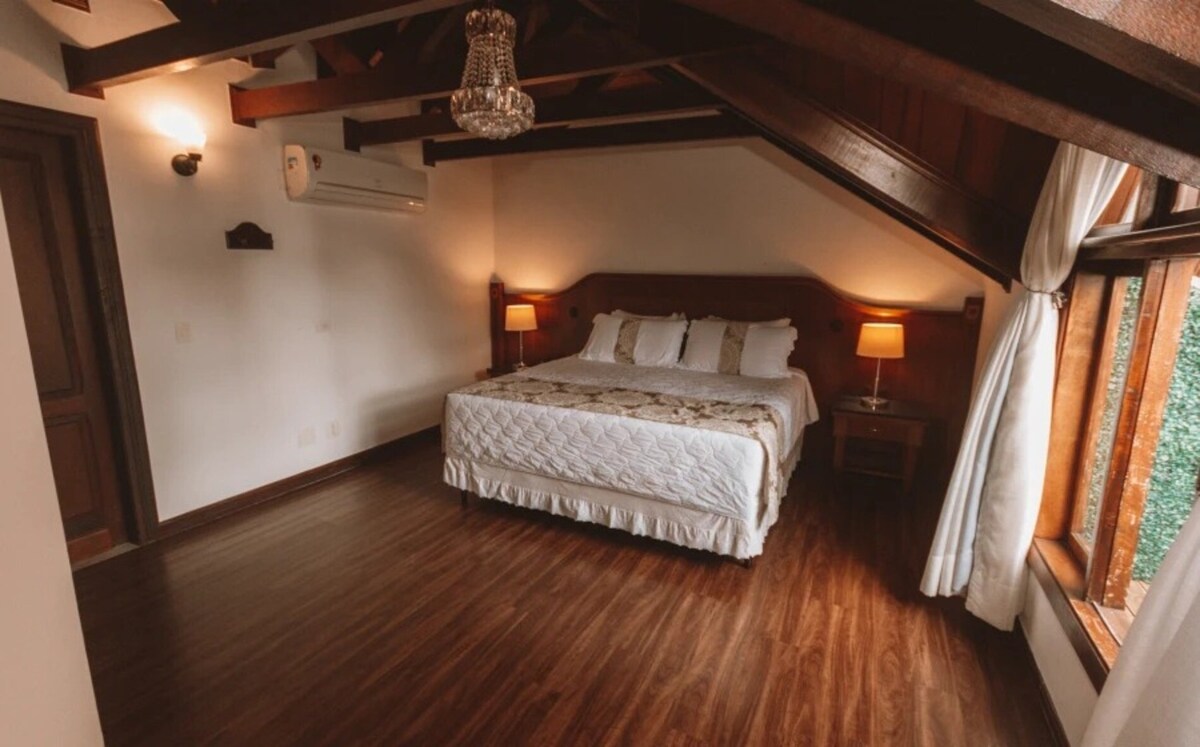 Hospede-se com conforto e privacidade em nossa Suíte Luxo, com café da manhã incluso (7h15 às 10h30). Destaques da Suíte: - Ar-Condicionado Split - Hidromassagem - Som Ambiente - TV Smart a Cabo - Frigobar - Wi-Fi - Escolha a Cor da Suíte (consulte antes) - Cozinha 24 Horas - Secador de Cabelo - Amenities - Kit Conforto (Roupões e Pantufas) - Garagem Privativa - Voltagem 110