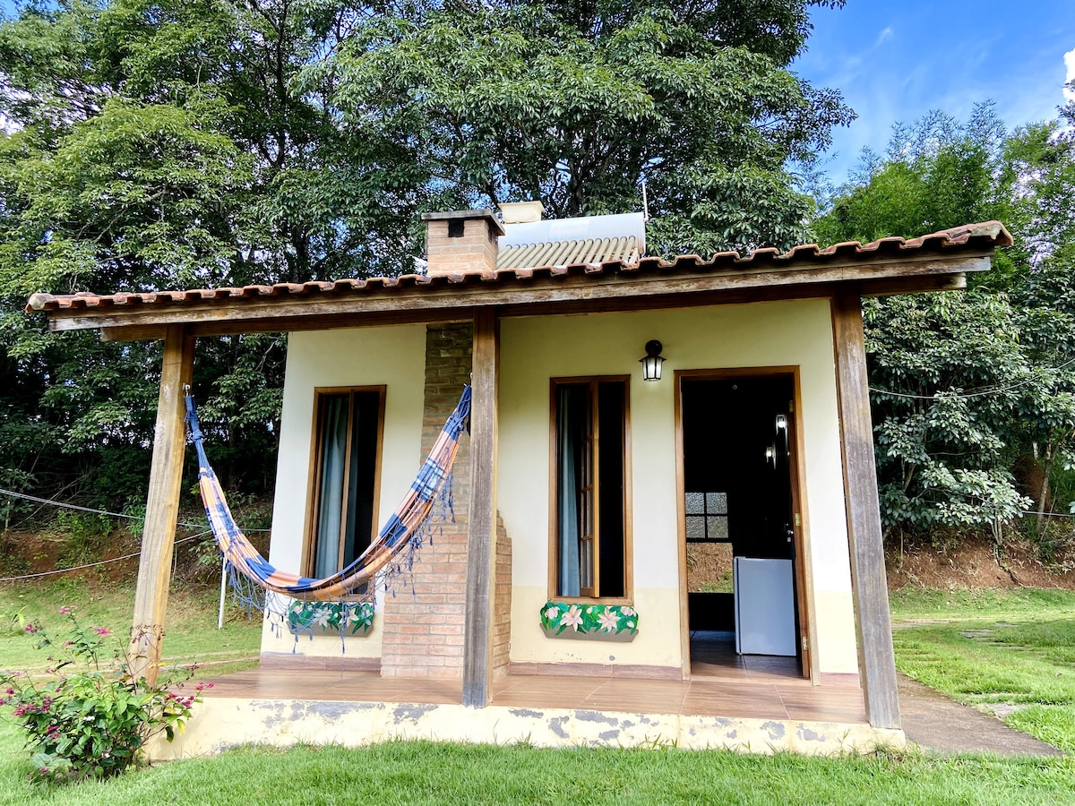 Um lugar aconchegante de frente p mata, a 100 mts da Cachoeira, com um café da manhã☕🍞 *super luxo* servido no chalé. Relaxe neste ambiente tranquilo, cheio de paz e reconecte c a natureza exuberante das montanhas de Minas Gerais.Localizado na zona rural de Soledade de Minas, a 5km da cidade❣️