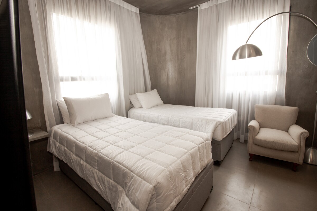 Ժամանակակից ննջասենյակ 2 մեկտեղանոց մահճակալներով SP - ի կենտրոնում: