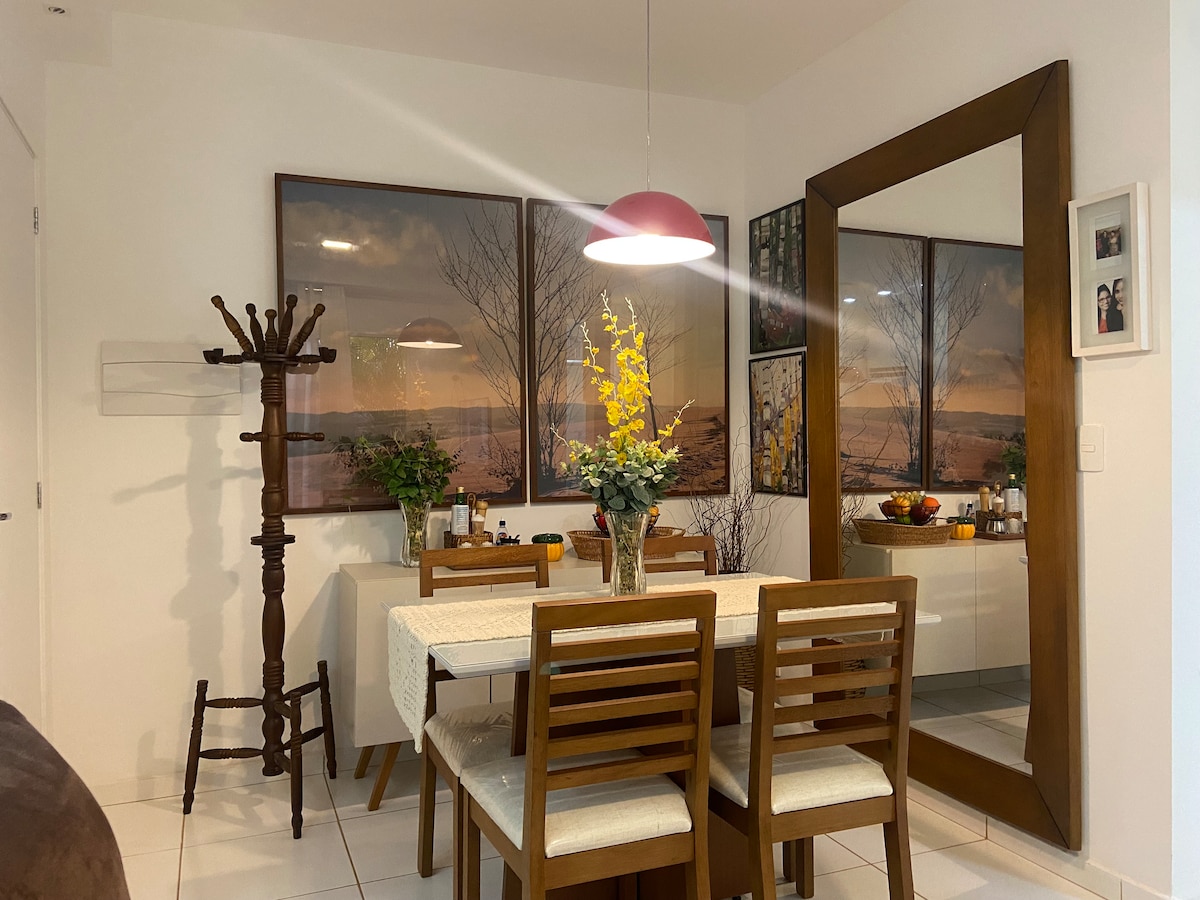 O Apartamento Aconchegante é uma estadia tranquila que foi criado com amor e muita dedicação…em cada detalhes… pensando na comodidade dos hóspedes para sentirem-se confortáveis nesse espaço harmonioso e acolhedor, próximos teremos supermercados, padarias, farmácias e lojas, a localização fica á 10 minutos do centro de carro.