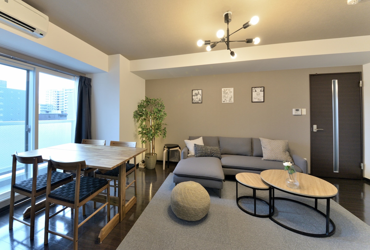 2BR/52㎡|5ppl|5minStn|FamilyOK|LStay|Near Susukino