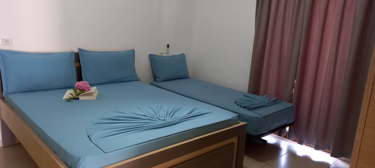 Բնակարանն այս տարի վերանորոգվել է ՝ բոլոր հարմարություններով, մաքուր և հարմար է 4 հոգու համար ։ Ննջասենյակն ունի մեկ 150 -179 սմ մահճակալ 2 հոգու համար, իսկ հյուրասենյակում ՝ մեկ երկտեղանի մահճակալ 2 երեխայի համար, հյուրասենյակում կա նաև խոհանոց ՝ ցանկության դեպքում ձեր ուտեստները պատրաստելու համար: Պատշգամբից բացվում է տեսարան դեպի հետնաբակ, որտեղ կան սեղան և աթոռներ ՝ ինչ - որ բան խմելու և տեսարանը վայելելու համար: Դուք նաև լիարժեք մուտք ունեք դեպի հետնաբակ ՝ մնալու և հանգստանալու, կամ երեխաներ ՝ խաղալու ։