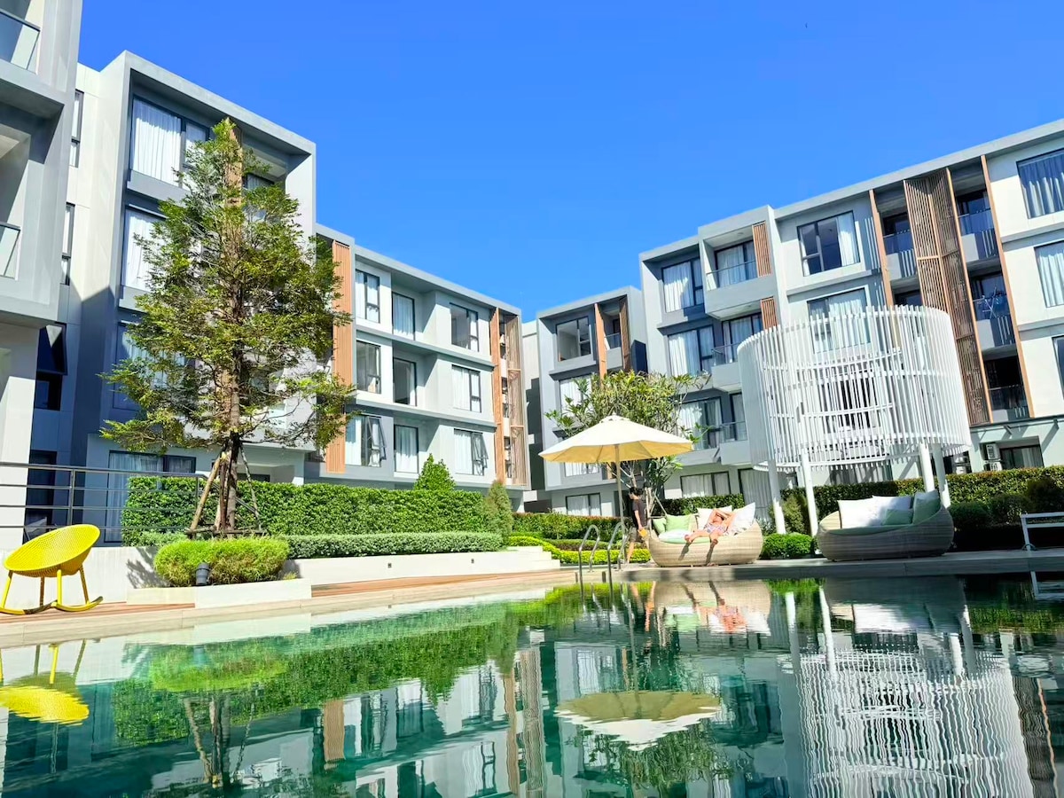 清迈南一环的花园泳池公寓 公寓为 一房一厅一厨一卫,带生活阳台,空间宽敞明亮。无论短住还是长住,都能享受到舒适而放松的居住体验。 ⸻ 🏡 房源亮点 ✨ 低密度社区 · 安静舒适 全社区为稀缺的 4 层洋房,住户密度低,环境安全安静,适合需要放松、安静办公与长期居住的客人。 ✨ 宽敞一房一厅 · 星级酒店配套 独立卧室与客厅分区,空间大于普通酒店房,适合情侣、小家庭、远程工作。 ✨ 可轻度烹饪的独立厨房 配备冰箱、电磁炉、微波炉、基础厨具与餐具,非常适合长期旅居客自煮早餐或简餐。 ✨ 生活阳台 · 可晾晒衣物 配洗衣机,可洗衣晾晒,适合长住与轻旅生活方式。 ✨ 小区泳池可免费使用 花园、泳池、宽阔步道,清晨或傍晚散步非常惬意。 ✨ 南一环核心区 · 生活机能强 • 距古城仅数分钟车程 • 距机场尚泰百货五分钟车程 • 社区Mini Big C超市商品丰富,可满足生活必需 • 前往机场、宁曼路、清迈大学都很方便 非常适合来清迈度假、工作、长期停留的客人。