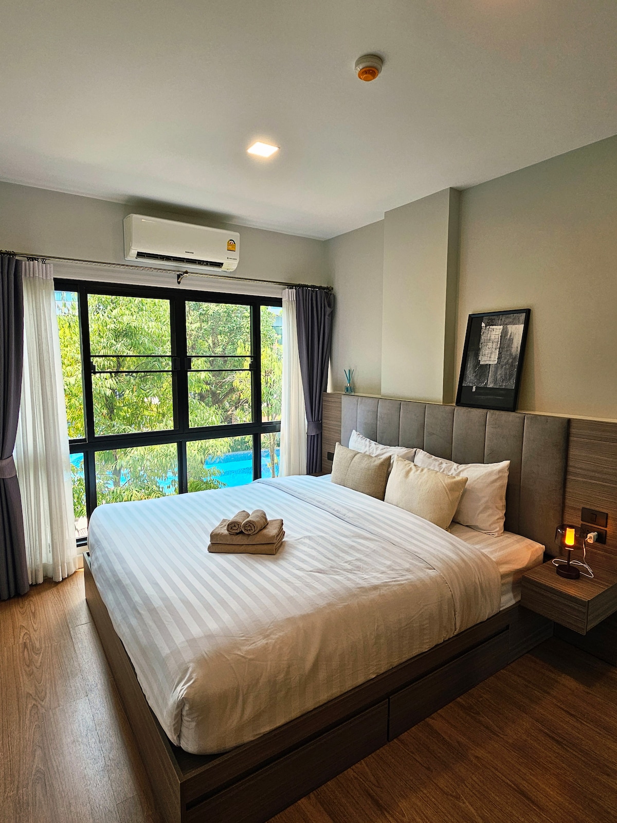 **Soft memory foam mattress topper|Bye bye traditional Thai style mattress** Beautiful Pool, Fitness, and Sauna are all free Kick back and relax in this calm, stylish space. Stay focused and productive in this serene and sophisticated workspace. Chiang Mai, a world-class hub for digital nomads, and our apartment is the perfect choice for you to embark on your journey in this thriving digital nomad community. Welcome to Chiang Mai!