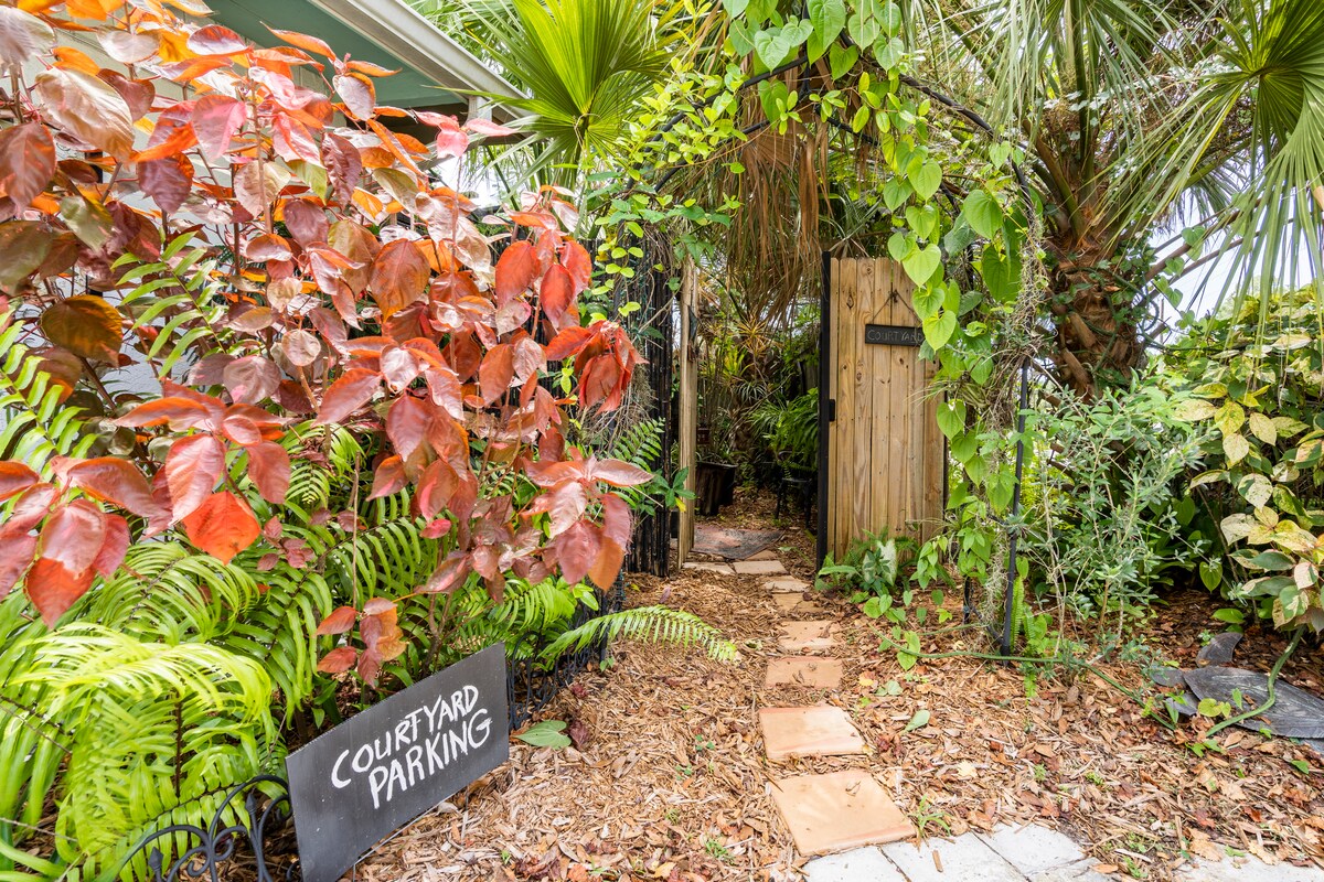 Our charming and private guesthouse has the BEST location and all the comfort and tropical coastal charm you’re looking for in your next getaway! The Azure Guesthouse is completely private - outside there is a shaded and private outdoor space and inside an open loft that sleeps 2 adults, living area with sofa & smart TV, full bath, kitchenette with dining space, and laundry. Located in walkable Southside Village with restaurants and shops at your doorstep and 8 min drive to the best beaches!