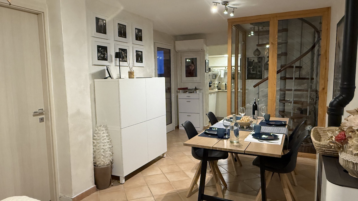Տունը 375 - ամյա շենք է, որը վերջերս ամբողջովին վերականգնվել է ։ Այն գտնվում է Բոսայի պատմական կենտրոնում ՝ Պիացցա Կարմինե քաղաքից 200 մ հեռավորության վրա, որտեղ կարող եք կայանել ձեր մեքենան: Այն մոտ 70 քառակուսի մետր է 4 մակարդակում (առանց վերելակի) և կարող է տեղավորել 4 հոգու համար ։ 2 հեծանիվ կարելի է օգտագործել անվճար ։