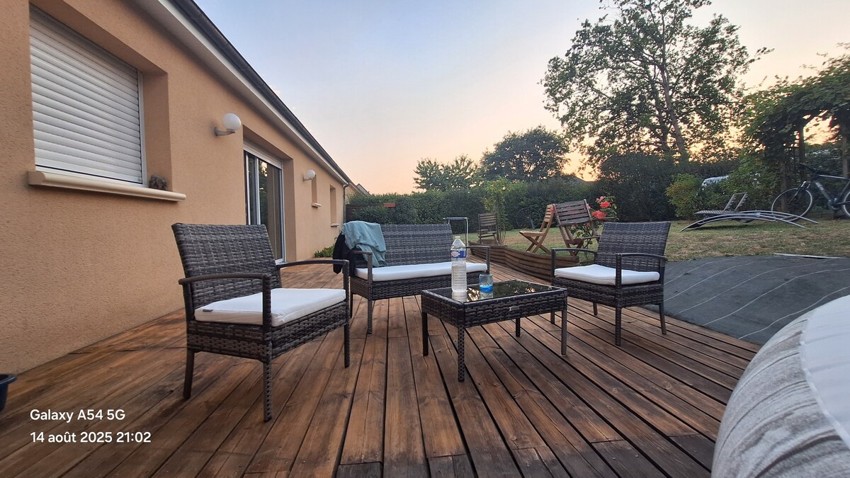 ****Tramway à 5min à pied qui mène directement au circuit des 24H et au centre des expo**** (bus en face également) 🌿 Parenthèse de détente au Mans Offrez-vous une escapade hors du temps dans cette maisonnette pensée pour le repos, le bien-être et le lâcher-prise. Entre baignoire balnéo, terrasse privative, lit queen size, tv, enceinte bose, kitchenette... Idéalement située, entre le centre ville et le circuit des 24h