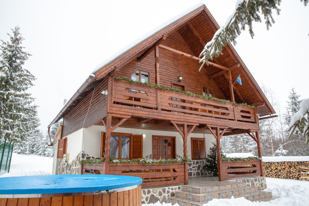 In the heart of the wild and romantic Székelyvarság (Vărșag) there is the Bigpine guesthouse, where in the mornings the squirrels, deers play and you can feel the pure energies of nature. A few hundred meters away you’ll find the amazing Csorgókő waterfall and a modern ski slope with restaurant. Just a few steps and you find yourself in a forest with fresh springs, strawberries, mushrooms. At the house you can enjoy the view relaxing in the hot tub and sauna. The fireplace melts everyones heart.