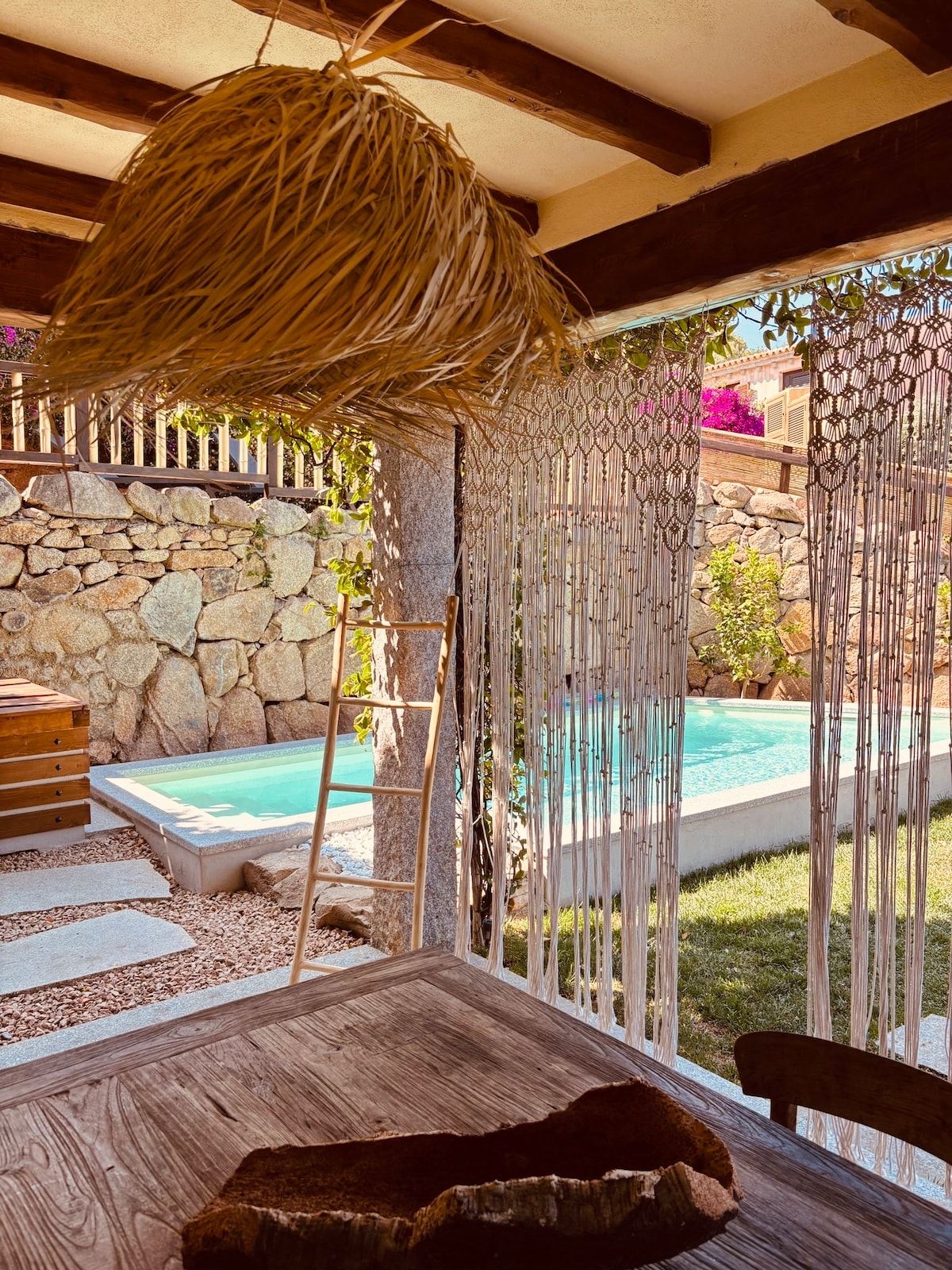 19 - րդ դարի վերջի հնագույն Gallurese stazzo - ն նոր վերանորոգված է մեծ այգով և ջեռուցվող լողավազանով ։ 4 ննջասենյակ, 4 լոգասենյակ, հյուրասենյակ ՝ սմարթ հեռուստացույցով, ճաշասենյակ ՝ խոհանոցով ։ Լուծումը հանգստի և լողափերին մոտ լինելու ճիշտ խառնուրդն է: Նավահանգստից և Օլբիայի օդանավակայանից մեքենայով 10 րոպե հեռավորության վրա, Պորտու Սան Պաոլոյից 10 րոպե հեռավորության վրա, Սան Տեոդորոյից 15 մ հեռավորության վրա և տարածաշրջանի ամենագեղեցիկ լողափերը (Պորտու Տավերնա, Պորտու Իստանա, Լա Սինտա, Կալա Բրանդինչի, Պունտալդիա և այլն):