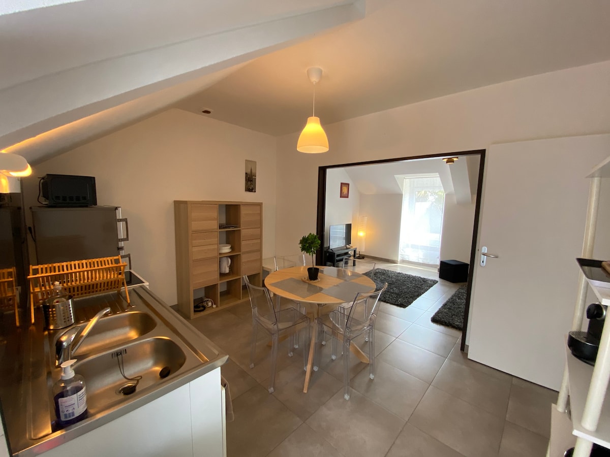 Appartement calme et lumineux situé en plein centre de Sarzeau, dans un petit immeuble de deux appartements. Une chambre privative avec télévision. Possibilité de fermer le salon pour seconde chambre avec vrai canapé lit. Parking gratuit place des Trinitaires à une dizaine de mètres. Proche tous commerces, plages à proximité, 20min de Vannes. Wifi disponible Jeux/ livres disponibles sur place.