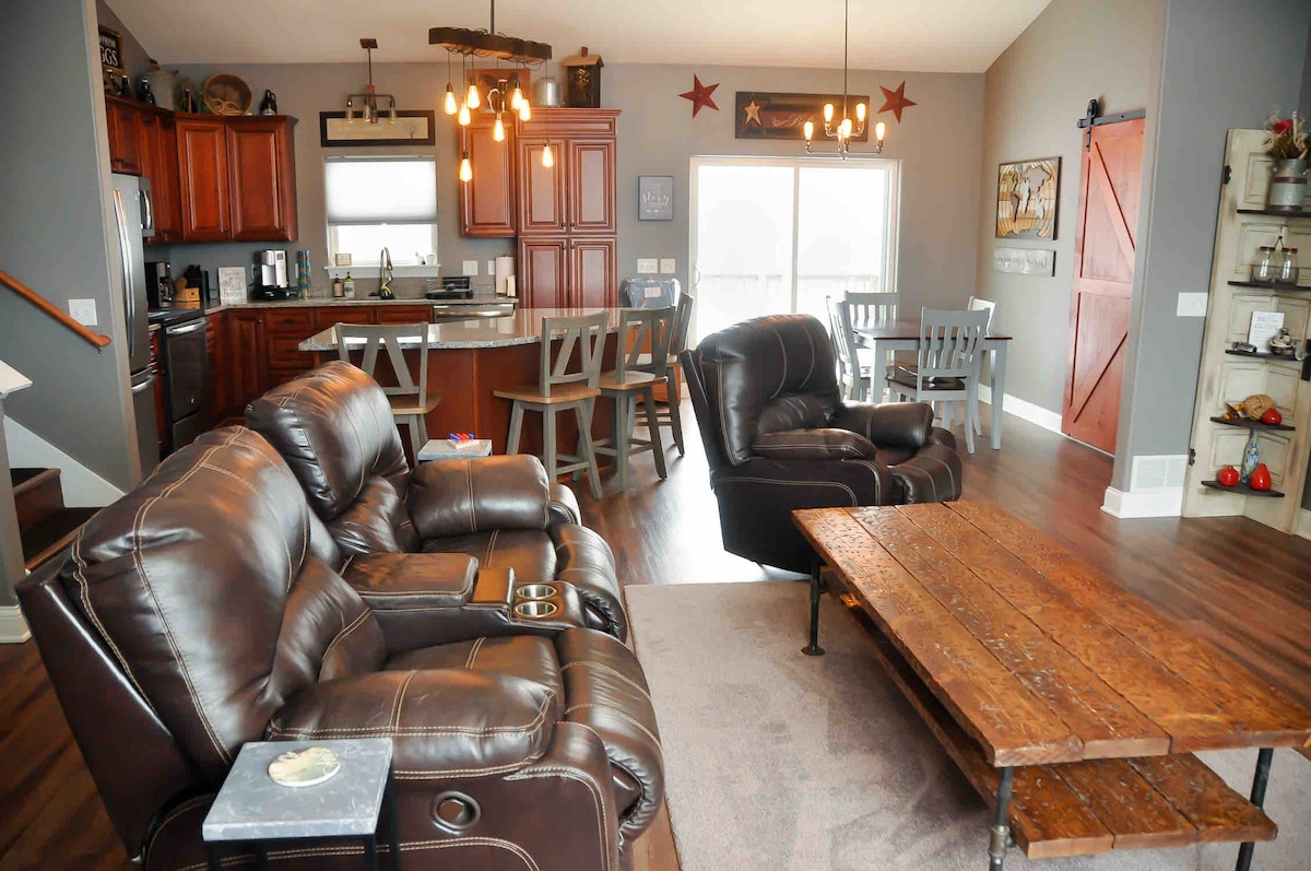 Անցկացրեք մի քանի օր գեղեցիկ գյուղական վայրում: Առանձին մուտք տան ստորին մասից (մեր տնից լիովին առանձին), որը ներառում է կենտրոնական սենյակ, 2 ննջասենյակ խոհանոցիկով և 1 լգ լոգարանով: WI - FI >500 Մբիթ/վ արագությամբ ։ Սմարթ 60 դյույմանոց հեռուստացույց, Bluetooth Airplay/հոսքային համատեղելի: Կայանատեղ տեսադաշտում: Հիանալի տեղադրություն ՝ 5 րոպե հեռավորության վրա գտնվող գեղեցիկ «Գարնանային կանաչ» կենտրոնից: Մոտ է բնակարանին, Taliesin/Frank Lloyd Wrights Home/School, House on the Rock, WI River, Gov. Dodge պետական պարկ և 1/2 ժամ դեպի Դևիլս լիճ պետական զբոսայգի: