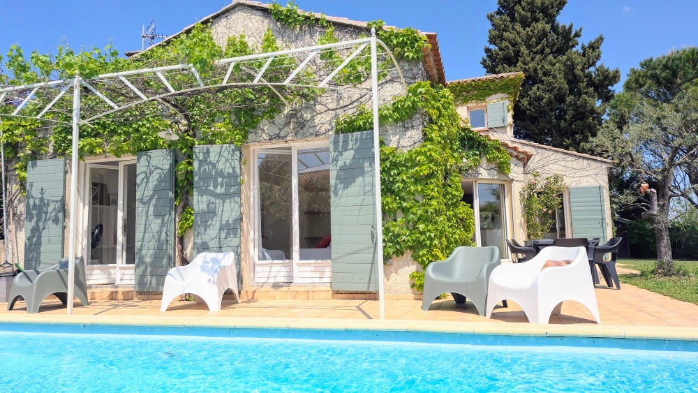 Ավինյոնից մի քանի կմ հեռավորության վրա, բայց հարմարություններին մոտ, մենք ողջունում ենք ձեզ մեր օդորակիչով շալեում ՝ 4 ննջասենյակով, առանձին լողավազանով, ծածկված տեռասով, մեքենայի ապաստարանով ։ Մի փոքր առանձնահատկություն ՝ տունը պարտեզում ունի թիավարում, ինչը թույլ է տալիս ցանկության դեպքում գալ ձիերի հետ ։ Ռազմավարական վայր, որն առաջարկում է հանգստություն, բնություն և բազմաթիվ մշակութային կամ զբոսաշրջային միջոցառումների մոտիկություն ։