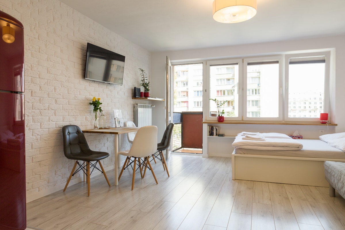 Յուրահատուկ արդյունաբերական ոճի ստուդիա Վարշավայի կենտրոնում: Ժամանակակից այս հարկաբաժնից բացվում են Վարշավայի հիասքանչ տեսարաններ ՝ ապահովելով իսկապես գրավիչ կենդանի փորձառություն: Բացահայտված աղյուսե պատերը, բետոնե ծորանները ստեղծում են գերժամանակակից և քաղաքային մթնոլորտ: Հարմարանքներից մինչև կցամասեր, ամեն ինչ ձեռքով ընտրվել է մանրուքների վրա ՝ բնակարանի միջավայրին նպաստելու համար: Գտնվում է 1910 թվականին կառուցված շենքի 6 - րդ հարկում ՝ առանց վերելակի, փայտե աստիճանների: