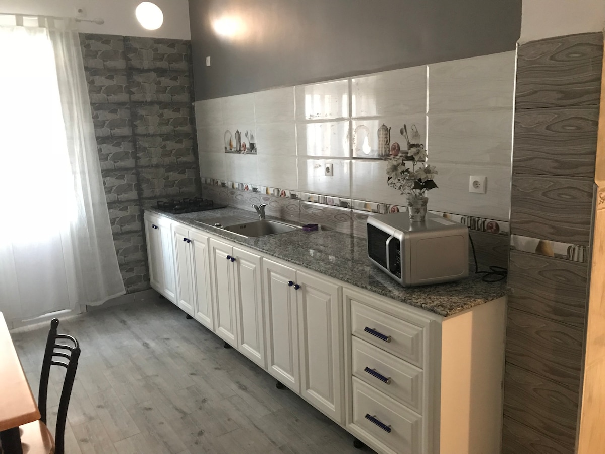 Հաճելի վարձույթ F2 բաց ծովային տեսարանով սալամանդեր, որը գտնվում է գլխավոր բուլվարում, 2 սենյակ մեծ կտուրով, 4 -6 մահճակալ 2 - րդ հարկում ՝ բնակելի շենքում, լավ կահավորված (հեռուստացույց , Wi - Fi ,օդորակիչ,ջեռուցում,լոգարանի տաքացուցիչ, լվացքի մեքենա, կահավորված խոհանոց )՝ մեծ ջրային թառափով, բոլոր կենդանի հարմարությունների մոտ, որտեղ կայանում են մզկիթը, փոստային բաժանմունքի ռեստորանները, ճաշարանները ,հարմարավետ խանութների կրեմների խանութները, տաքսի տրամվայի ավտոբուսները լողափերը