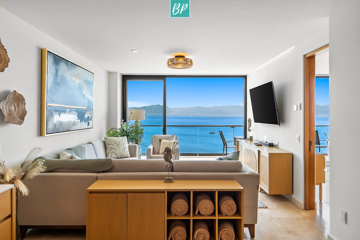 Brand new gorgeous beachfront studio apartment. Featuring designer accents and smart technology with sleeping and dining arrangements for a max of 4 people. Enjoy the resort like amenities such as: infinity pool, lap pool, kids pool, jacuzzi tub, gym and of course direct beach access. Centrally located in Vallarta´s Hotel Zone, you will be walking distance to grocery stores, shopping, spas and restaurants.
