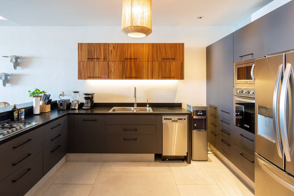 Enjoy a stylish experience at this centrally-located casa. The beachfront luxury condo is steps from Downtown Sayulita's restaurant and nightlife scene, yet sheltered from the noise - offering peaceful bliss within walking distance to anything you need. The 3 bedroom space offers 4 beds (2 Kings, 2 Doubles), a full kitchen, TV's, internet, 2 working stations w/ docking systems, luxury décor/finishes, a private balcony with breathtaking ocean views, etc. Common Space: Infinity pool, BBQ lounge