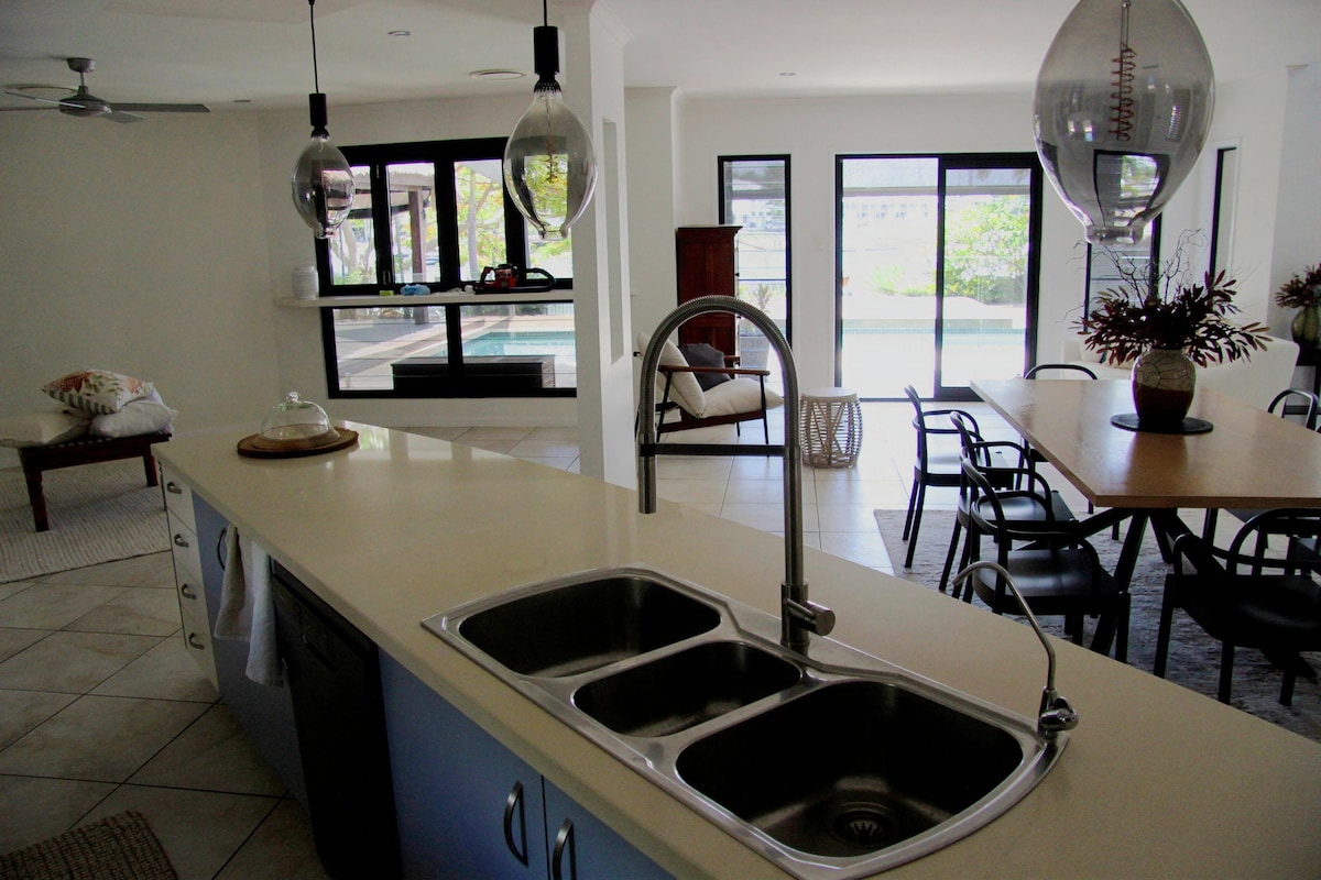 Վայելեք լավագույն մայրամուտը Քվինսլենդում: Հանգստացեք և լիցքաթափվեք այս ժամանակակից ափամերձ գոտում ՝ ափամերձ գոտուց ընդամենը 100 մ հեռավորության վրա ։ - ներքևում օդորակիչով բնակարանի ամբողջական օգտագործում (մենք ապրում ենք վերևում) - առանձին լոգասենյակ, լվացքատուն և լոգասենյակ ։ - ալֆրեսկո տարածք, կրակարան, սիզամարգի աթոռներ - պիկնիկի գորգ, չիզբորդ և աթոռներ ՝ ամբողջ ճանապարհին գեղեցիկ մայրամուտին մասնակցելու համար - Ոտքով հեռավորություն դեպի ափամերձ գոտի, սրճարաններ, պանդոկներ և բարեր: