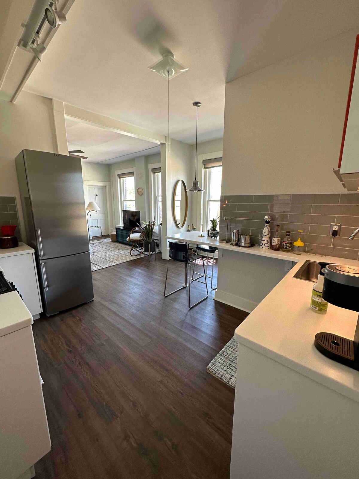 This is a one-bedroom unit in a 3-unit building w/ 1 parking space. The space is completely separated from the other units in the building. The third floor living room and bedroom have a great view over the surrounding buildings. There is a spacious bathroom, with clean fresh towels, and some basic necessities, hair dryer, etc. The kitchen is new with a stove, refrigerator, and microwave. All kitchenware is supplied and some basic cooking items are provided. A drip coffeemaker is provided.