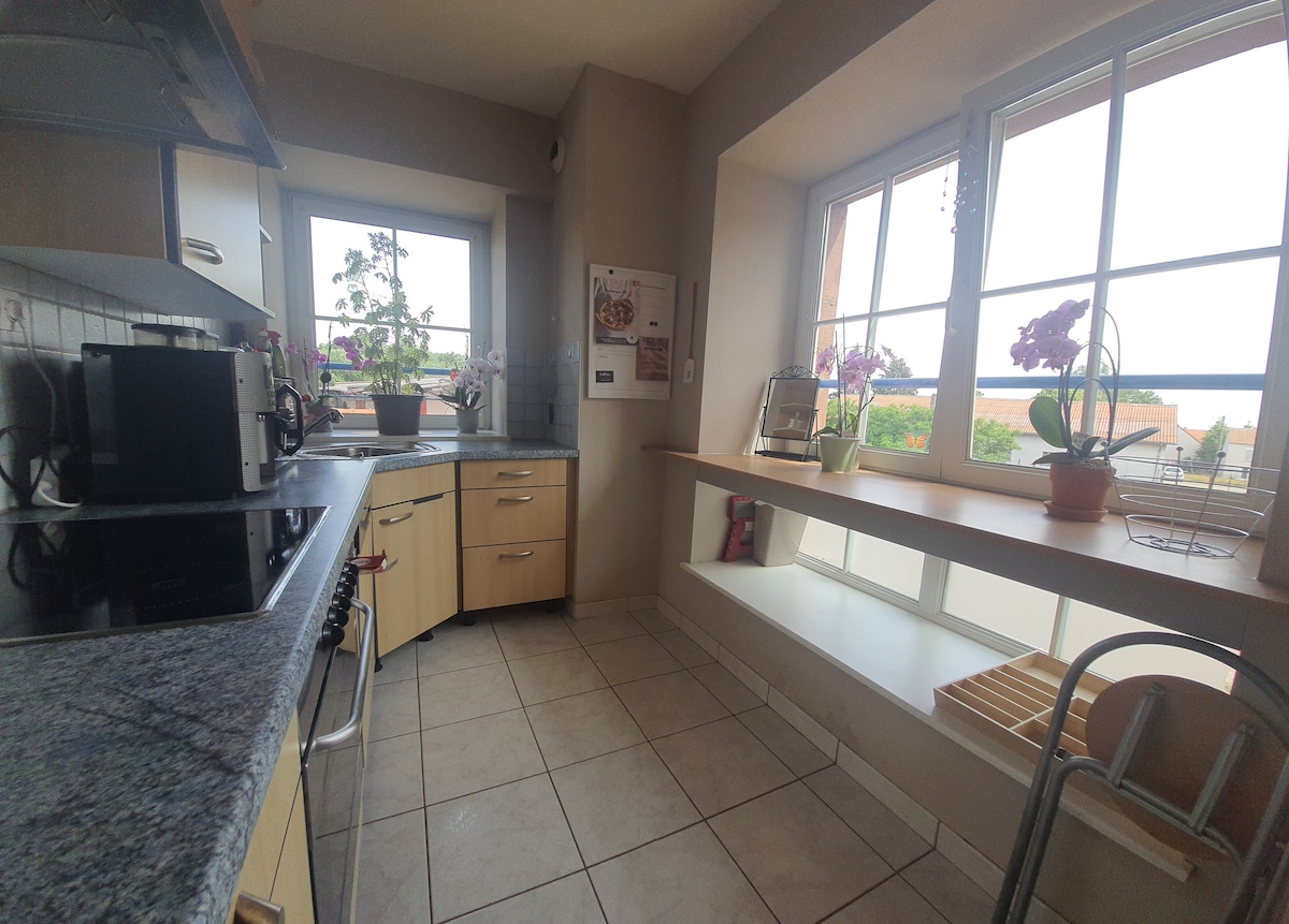 ✨ Bienvenue dans notre appartement cosy avec vue sur la Citadelle de Bitche ✨ Situé au premier étage d’une maison familiale, notre appartement de 75 m² allie confort, modernité et convivialité. Nous habitons au rez-de-chaussée, ce qui nous permet d’être disponibles tout en respectant votre totale indépendance. L’appartement est entièrement équipé, décoré avec soin dans un esprit cosy et moderne, offrant un bel espace de vie. Vous profiterez d’une magnifique vue sur la Citadelle de Bitche