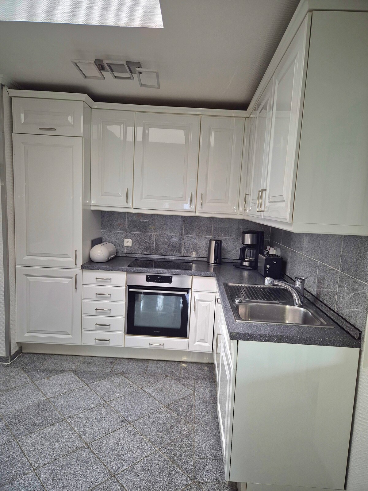 Բնակարան ՝ մեծ տեռասայով և պարտեզով Միջեւ Հյուսիսային ծովի եւ Բալթիկ ծովի միջեւ ջրանցքի վրա Schleswig - Holstein ի մեջտեղում Westerrönfeld մոտ Rendsburg Հարմարավետ, լուսավոր, ժամանակակից, 56 մ² մակերեսով, բաց հատակագիծ ՝ դիզայներական հարկերով բարձրակարգ կահավորանքով: Շատ մուտք ունի դեպի դուրս, հարավարևմտյան կողմնորոշում և սեփական կտուր ։ Խոհանոց - հյուրասենյակ ՝ ամանալվաց մեքենայով, սառնարանով, կոնվեկցիոն վառարանով, կերամիկական ջեռոցով, շրջանառվող օդորակիչով, աղբի բաժանման համակարգով և հյուրասենյակին: Ներքևի ջեռուցում, հեռուստացույց (կաբելային հեռուստատեսություն) Wi - Fi