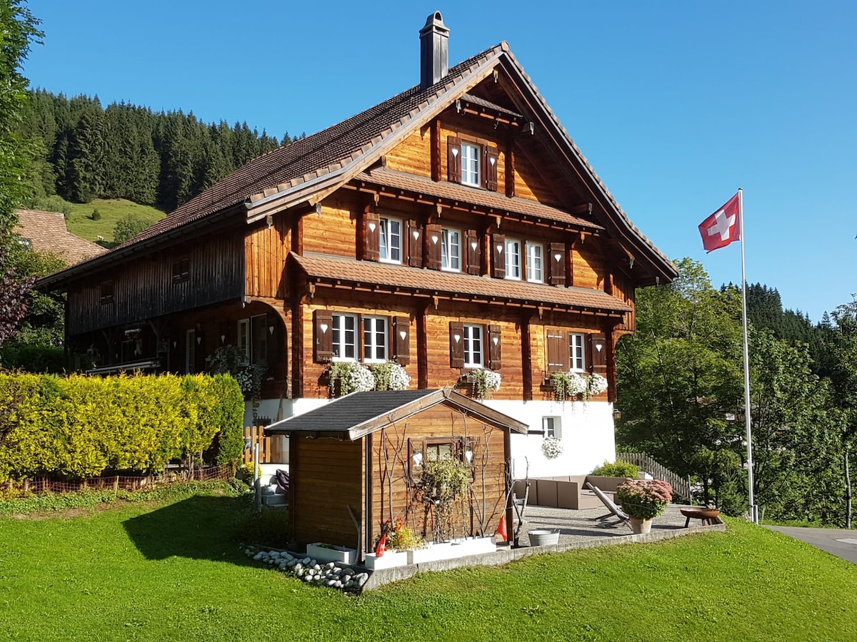Ruhige Wohnung mit Bergblick über 2 Etagen im charmanten Holzhaus – ideal für Familien & Gruppen. 4 Schlafzimmer mit Doppelbett (+ 3 Zustellbetten vorhanden), voll ausgestattete Küche, 2 Badezimmer, Wohnzimmer. Garten mit Aussicht, Lounge, Grill & Essbereich. Fitnessraum & Waschküche im Haus. Kostenlose Parkplätze direkt vor Ort. Perfekte Kombination aus Natur, Komfort und Erholung – ideal für entspannte Ferien.