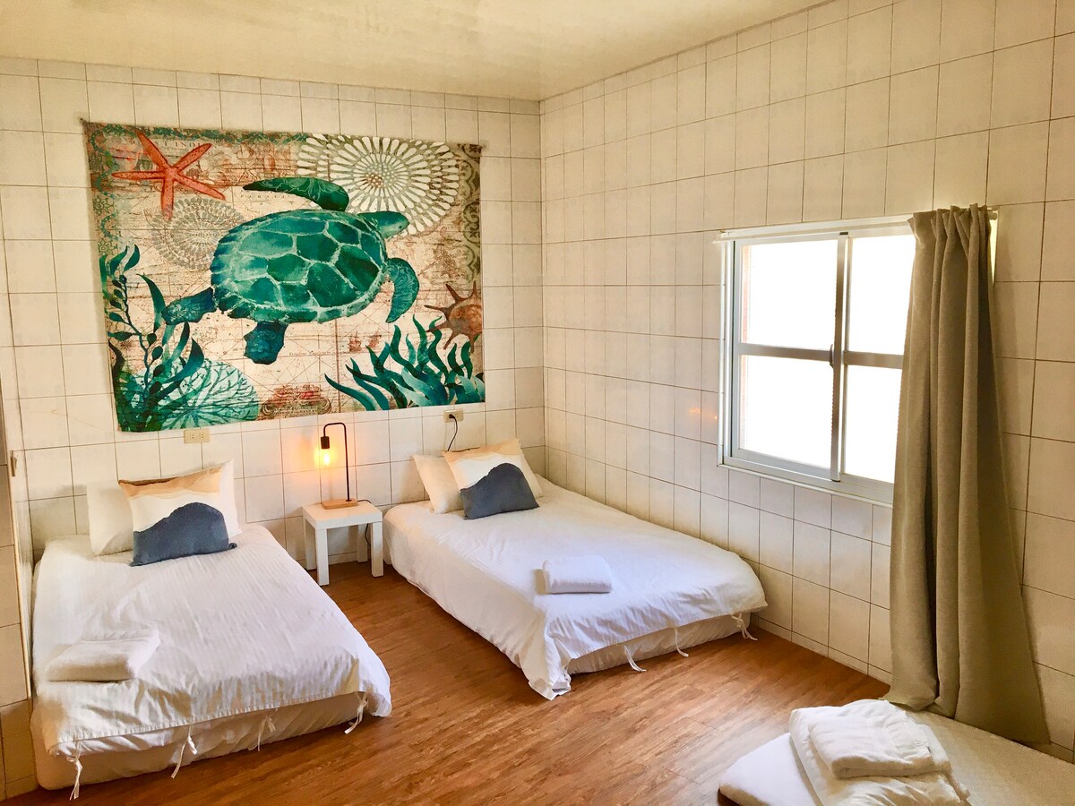 背包床位出租 六人混宿上下鋪,我們在琉球有開一間餐廳,這是我們打造給換宿小幫手的房間,有多的床位就會出租給各位 ; 空間不大,適合輕旅行的朋友,若行李多,或有超大行李箱不適合入住 ; 提供沐浴乳&洗髮精,毛巾牙膏、刷等用品請自備 室外有空間可以掛曬衣服及潛水用品。 位置在寧靜的巷子裡,因為是木製結構,隔音沒有辦法到非常好, 鄰居長輩們都早睡早起,早上可能會聽到鄰居的聲音,晚上長輩們都很早睡,我們這不能太吵,室內可以小酌聊天,但不能喝酒開趴,想喝可以去酒吧喝完再回來好好睡覺唷! 我們也是Sup教練,想玩任何水上活動都可以問我們,幫你推薦最適合你的店家,當然也有提供船票機車代訂(無法當天臨時預定)