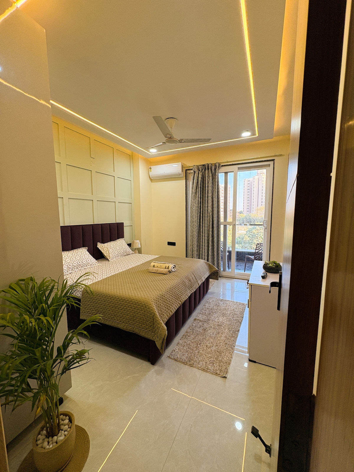 Մնացեք մեր ընդարձակ 2BR Park - View Retreat - ում, օդանավակայաններից 8,5 կմ հեռավորության վրա և 15 րոպե տևողությամբ ուղևորություն դեպի մետրո: Վայելեք ընդարձակ պատշգամբները, զբոսայգու տեսարանները, կարմրափայտի/փայտե մահճակալները, լիովին կահավորված խոհանոցը, գերարագ Wi - Fi - ը, Smart TV - ն, հիգիենայի անվճար պարագաները և տեղական առաջարկությունները: Վայելեք տան պայմաններում պատրաստված կերակուրները, ուսումնասիրեք մոտակա շուկան և մոլերը և լիցքաթափվեք վազքի խաղաղ ուղիներով ։ Զգացեք բարձրակարգ հյուրընկալություն ՝ ճկուն ժամանման/մեկնման, լվացքատան ծառայությունների և ըստ ցանկության օդանավակայանի փոխանցումների ։ Ամրագրեք հիմա ՝ հիշարժան Դելիում մնալու համար ։